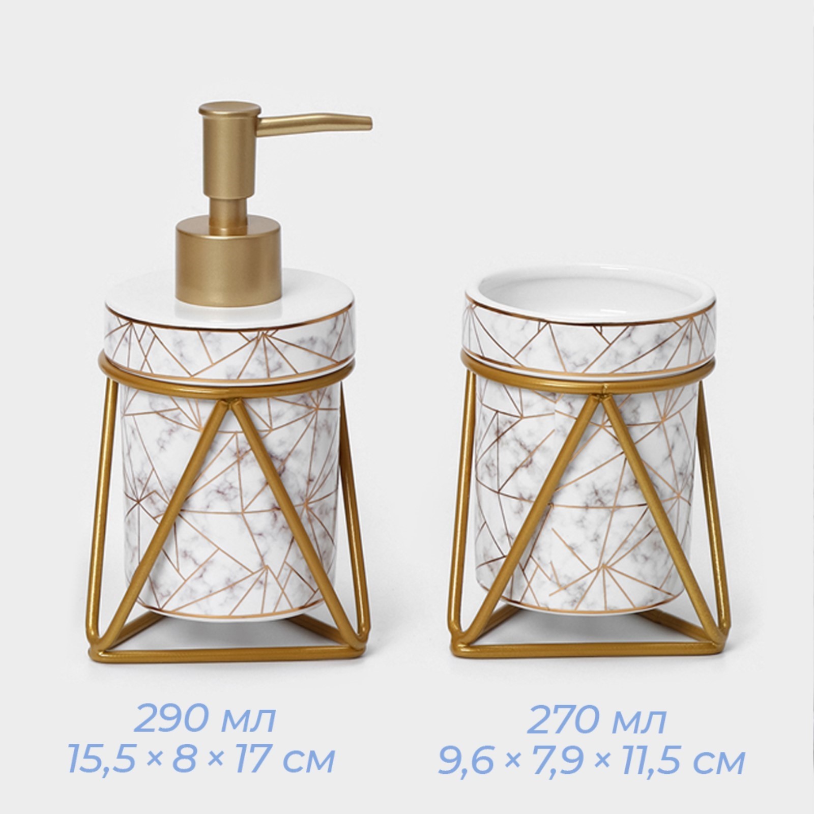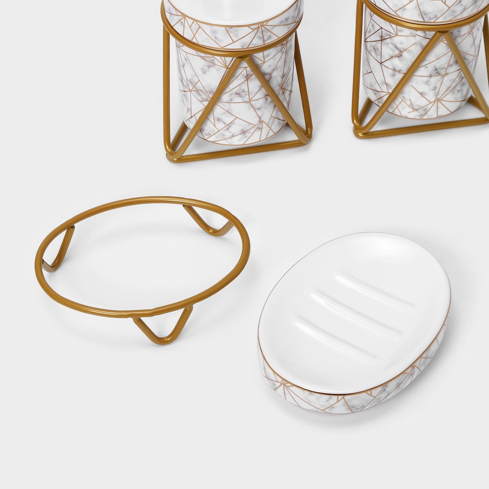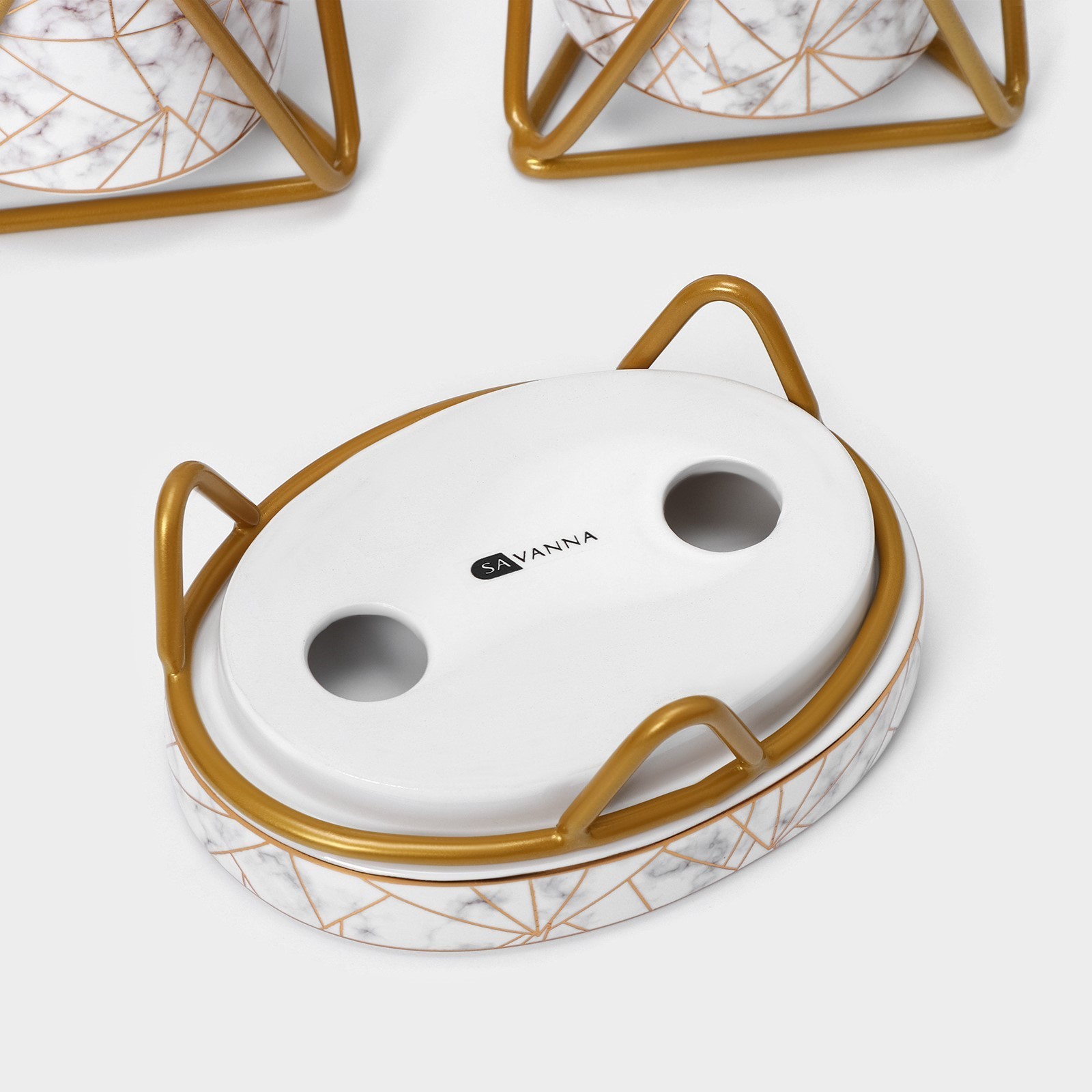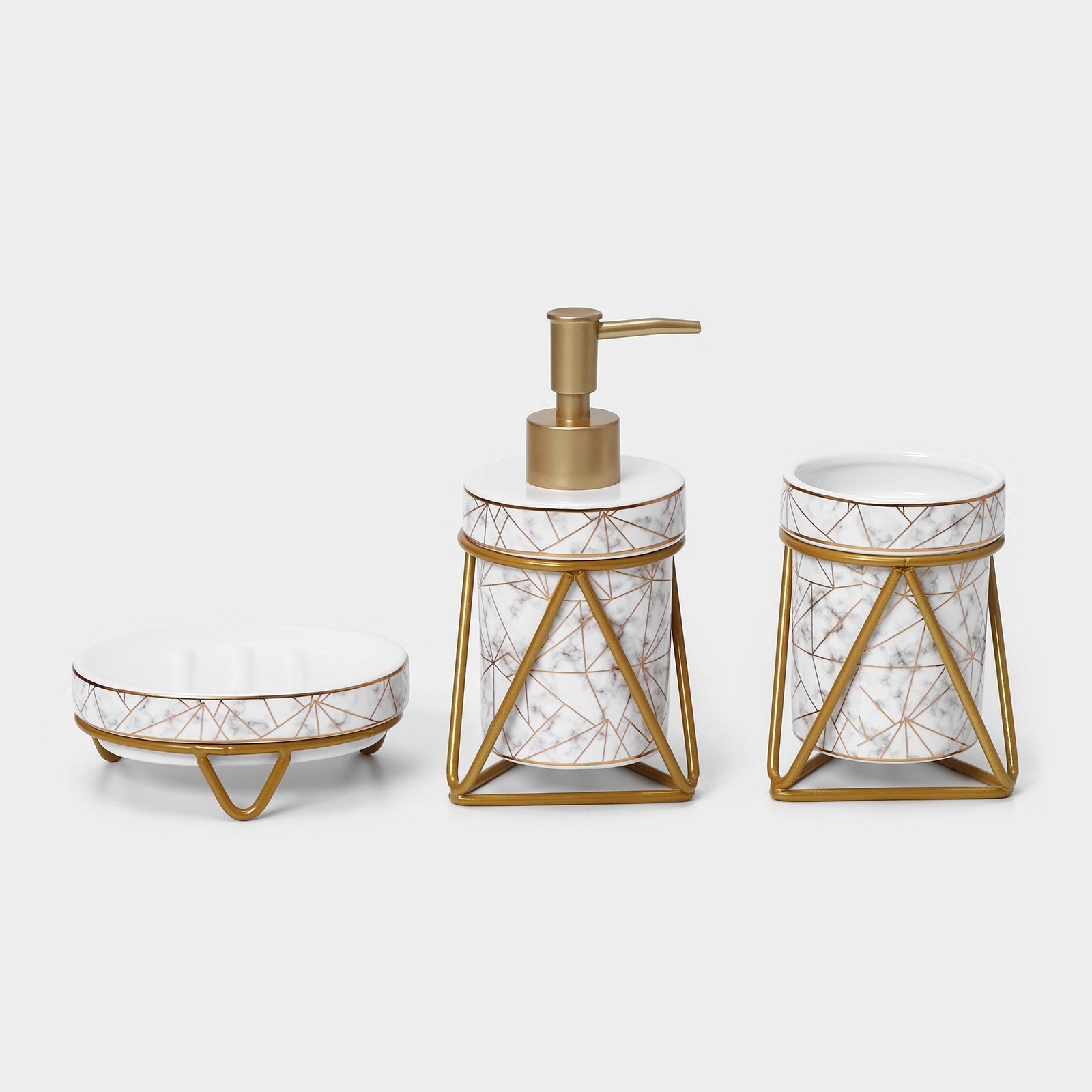 Набор для ванной комнаты Savanna «геометрика», 3 предмета (мыльница, дозатор для мыла 290 мл, стакан), цвет белый