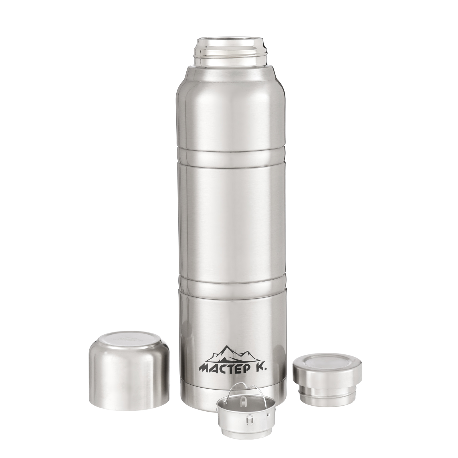 Термос, 1.5 л, Warm мастер к.,с кружкой,с ситечком,сохраняет тепло 24ч, хром,чехол в подарок