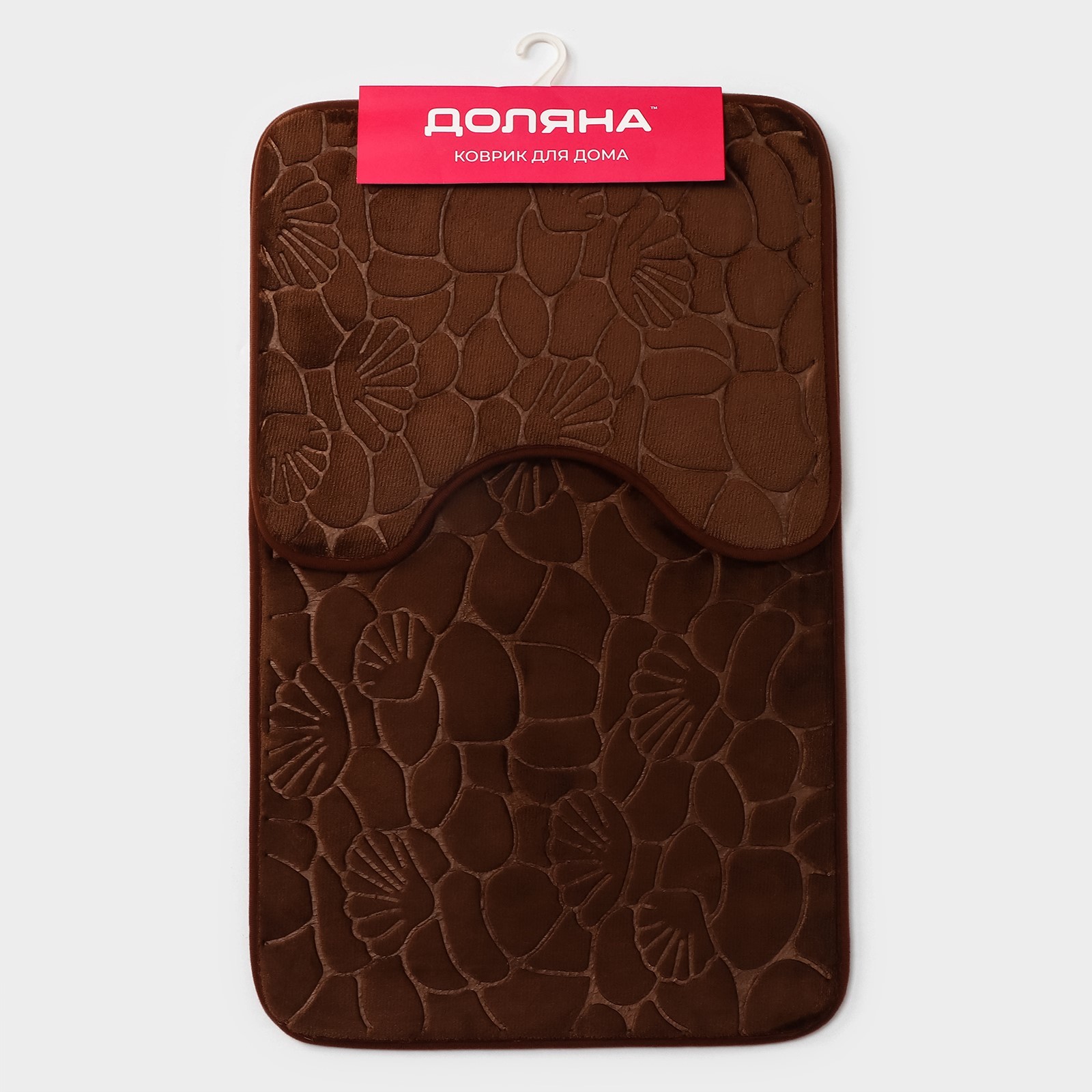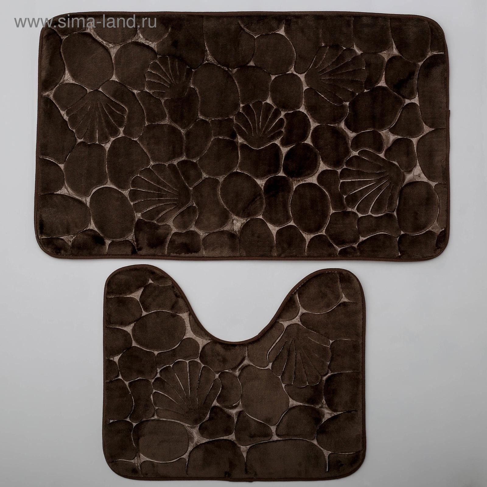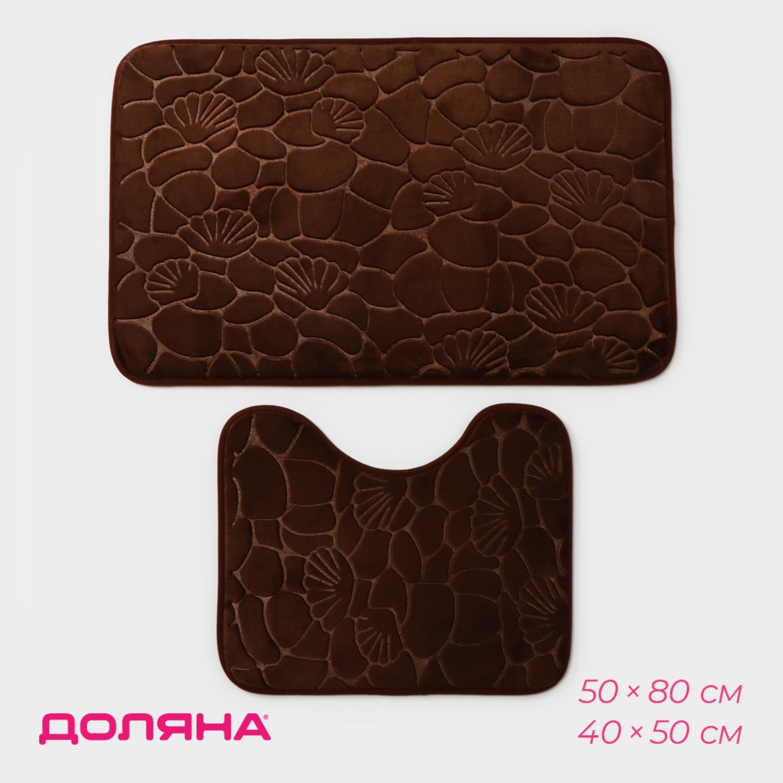 Набор ковриков для ванной и туалета доляна «галька, ракушки», 2 шт, 40x50 см, 50x80 см