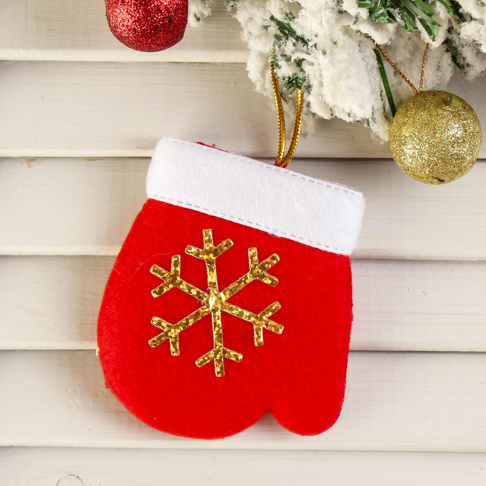 Подвеска на ёлку мягкая «варежка с золотой снежинкой» 8 6 см, красный. Текстильная подвеска в форме варежки с изящным узором золотой снежинки — это утончённый элемент новогоднего декора, который привносит в атмосферу зимних праздников особое тепло и уют. Яркий красный цвет подчёркивает праздничный настрой и традиционные оттенки, а сочетание стилей новогоднего барокко, скандинавского минимализма и фьюжн создаёт гармоничный и современный образ. Такая мягкая игрушка станет заметным акцентом на ёлке или в любом уголке дома, добавляя изысканности и глубины оформлению.