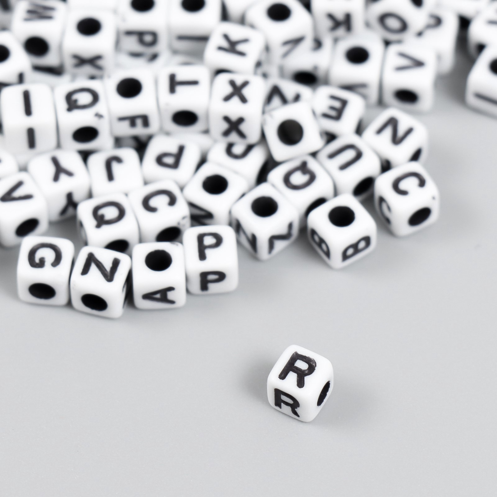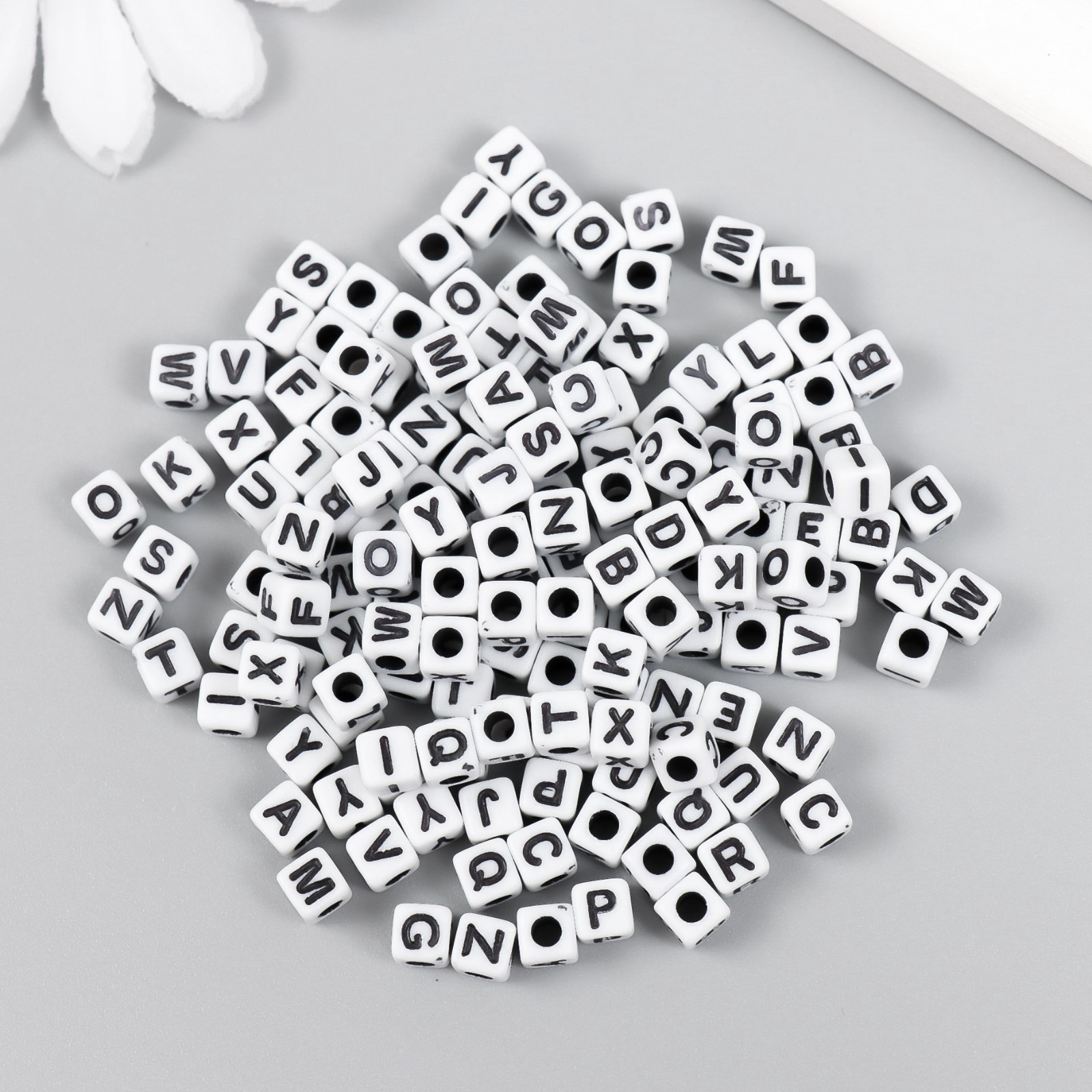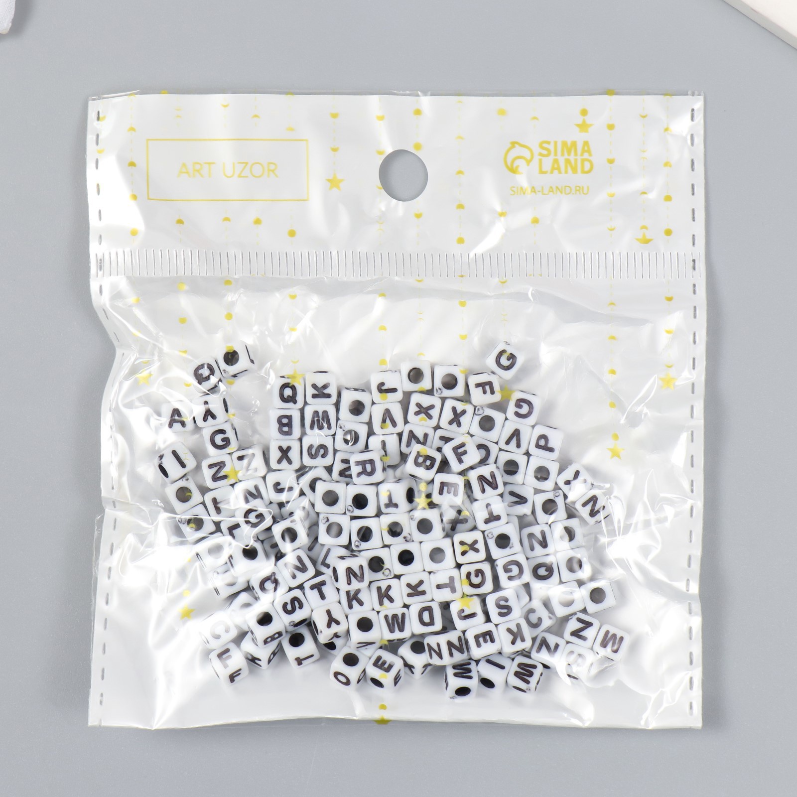 Набор бусин для рукоделия и плетения «арт узор. английские буквы на кубике», пластик, белые, 15 г, 0.5 0.5 0.5 см