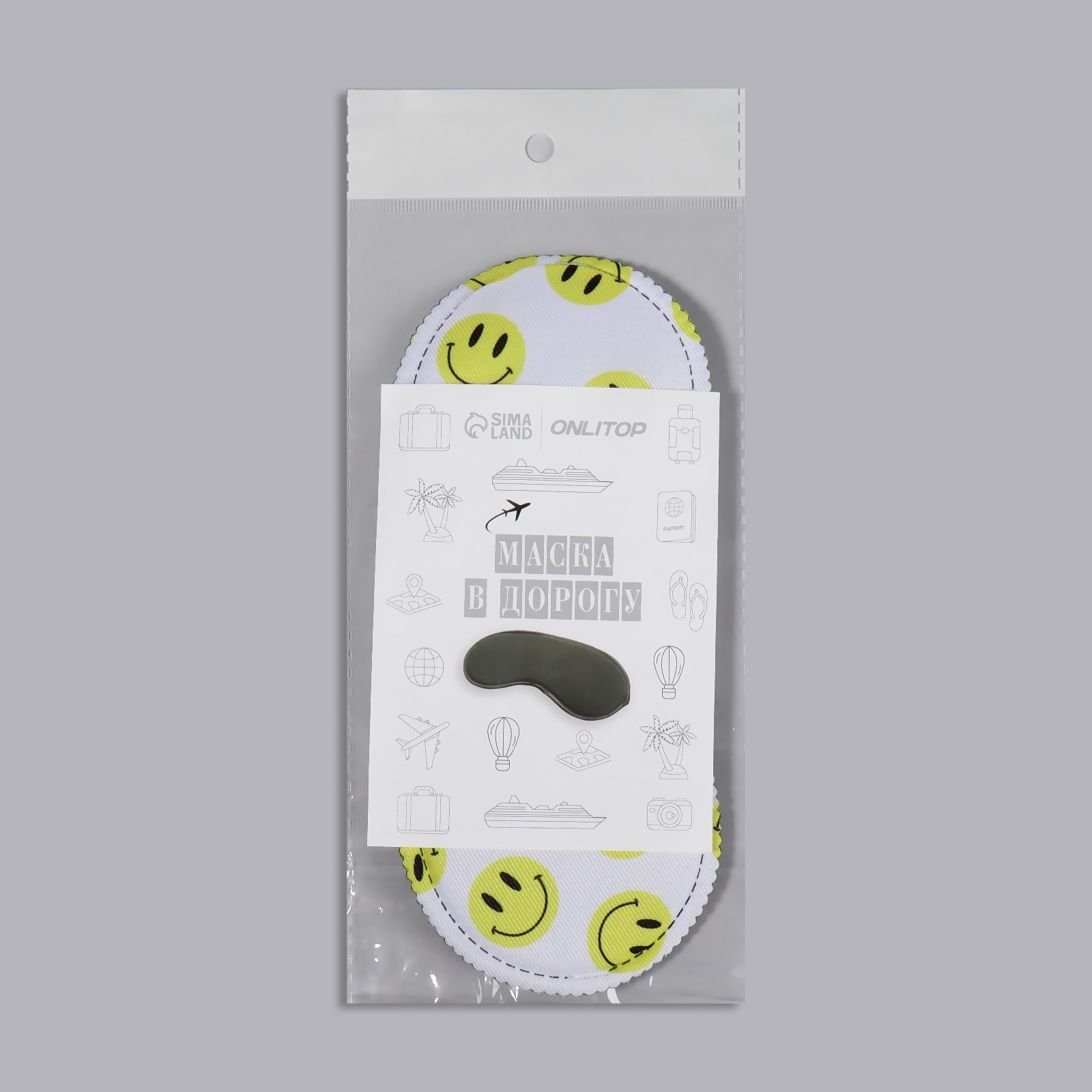 Маска для сна Good Vibes, 19 X 8,5 см, резинка одинарная, цвет белый/жёлтый