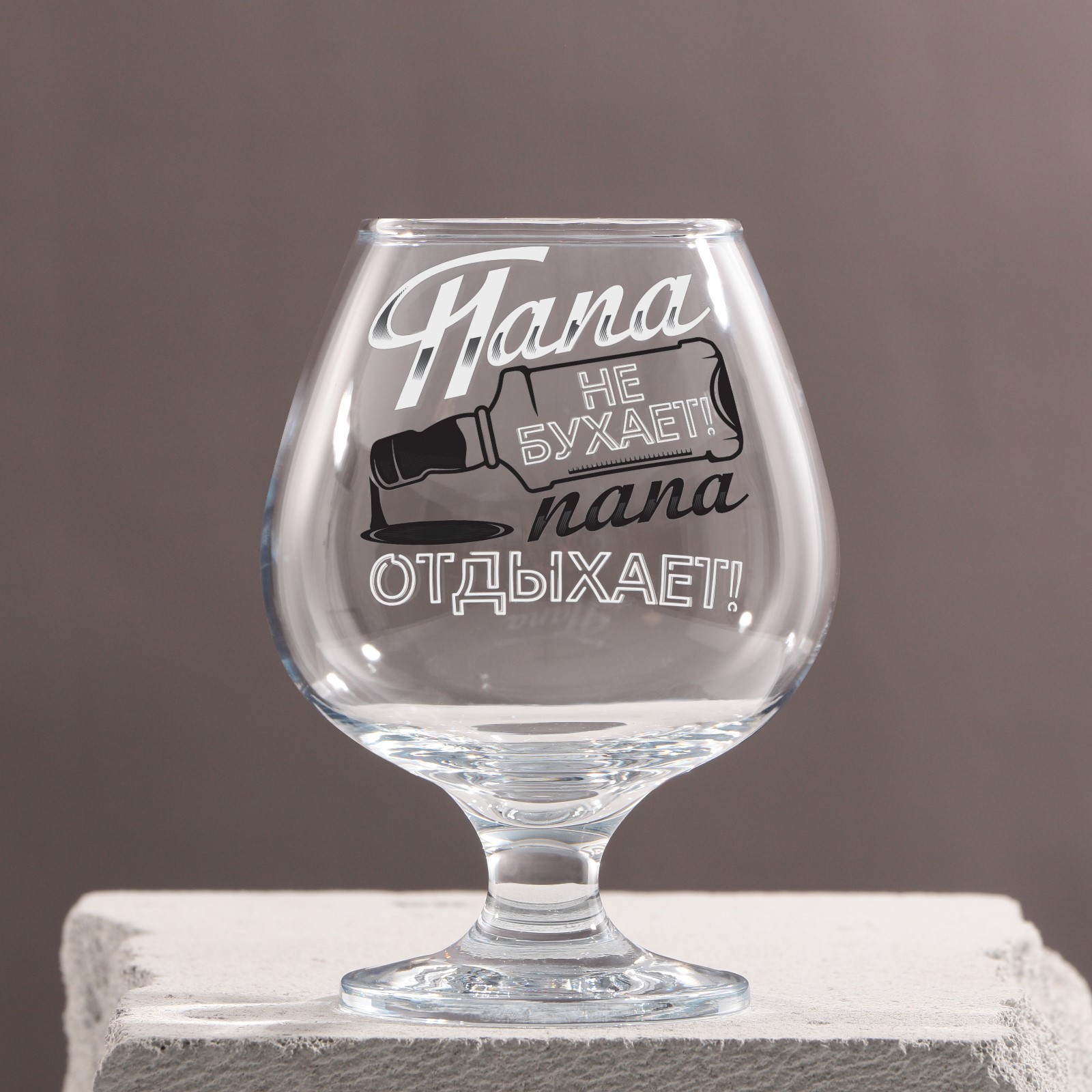 Бокал для коньяка "папа не бухает" бутылка, 265 мл, деколь