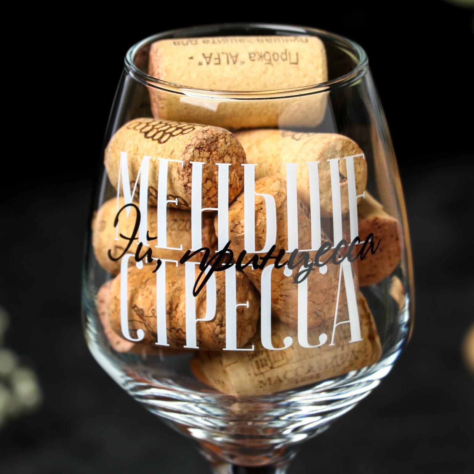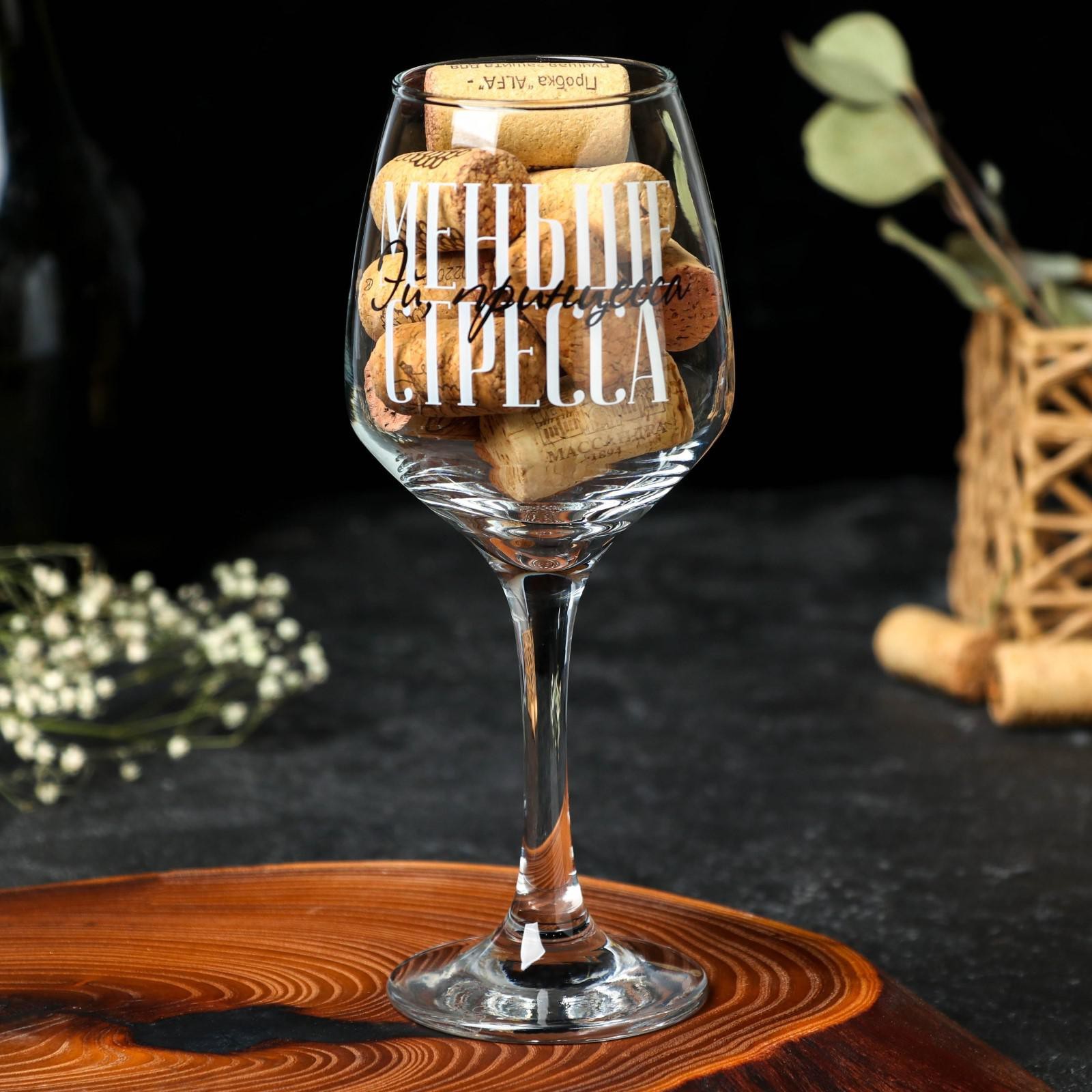 Бокал для вина «меньше стресса» 350 мл, тип нанесения рисунка: деколь