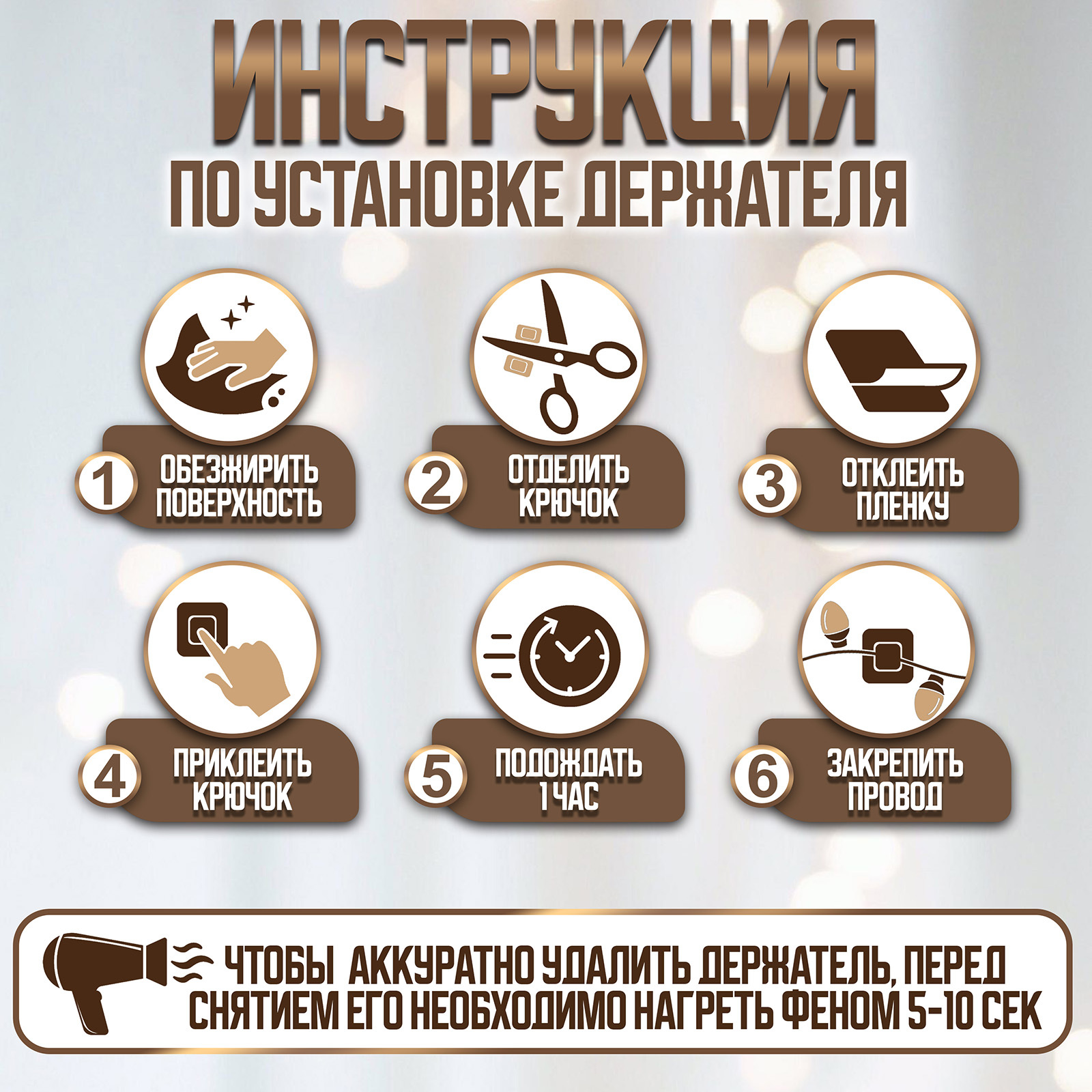 Держатель самоклеящийся для проводов и гирлянд тундра Krep, 15х15 мм, белый, 18 шт.