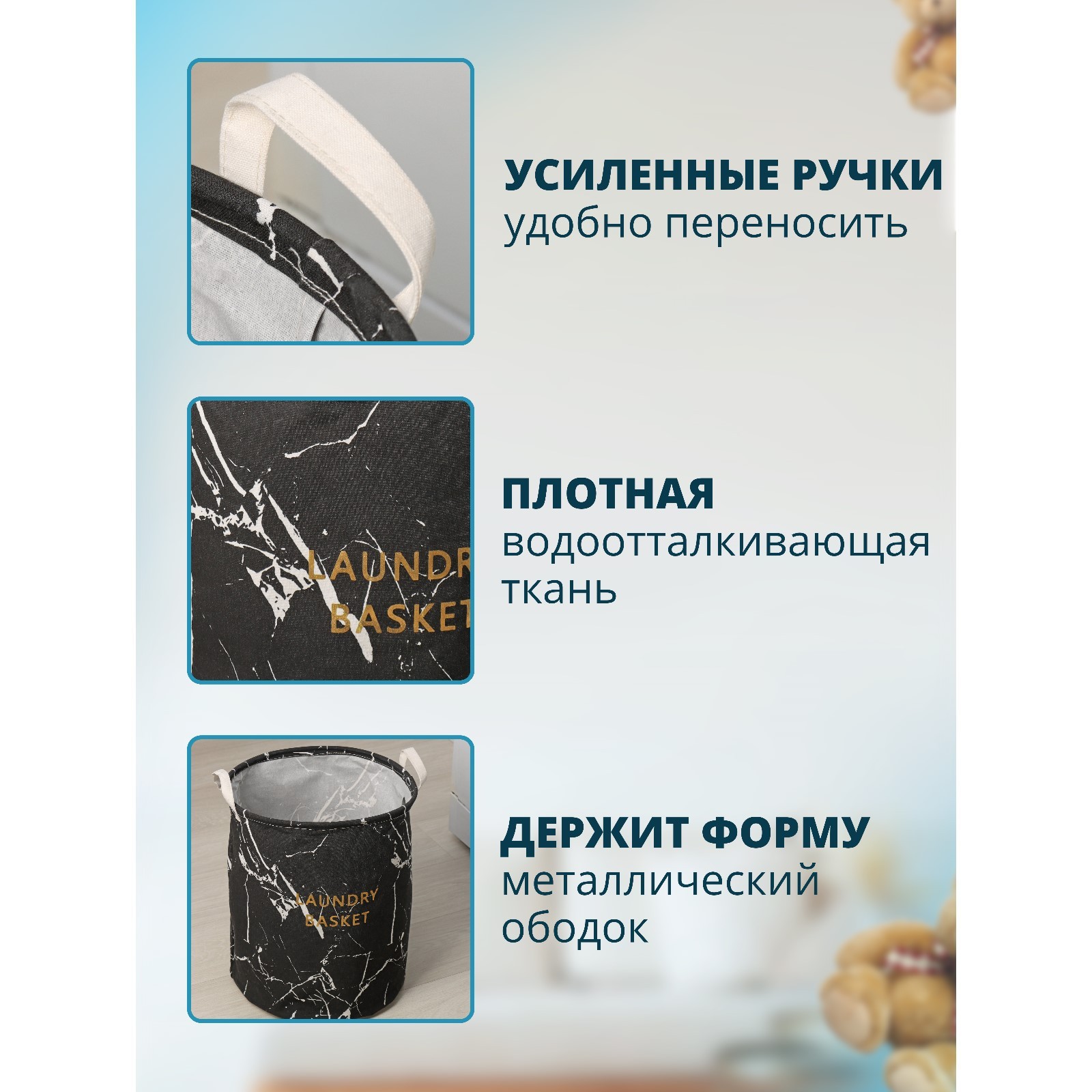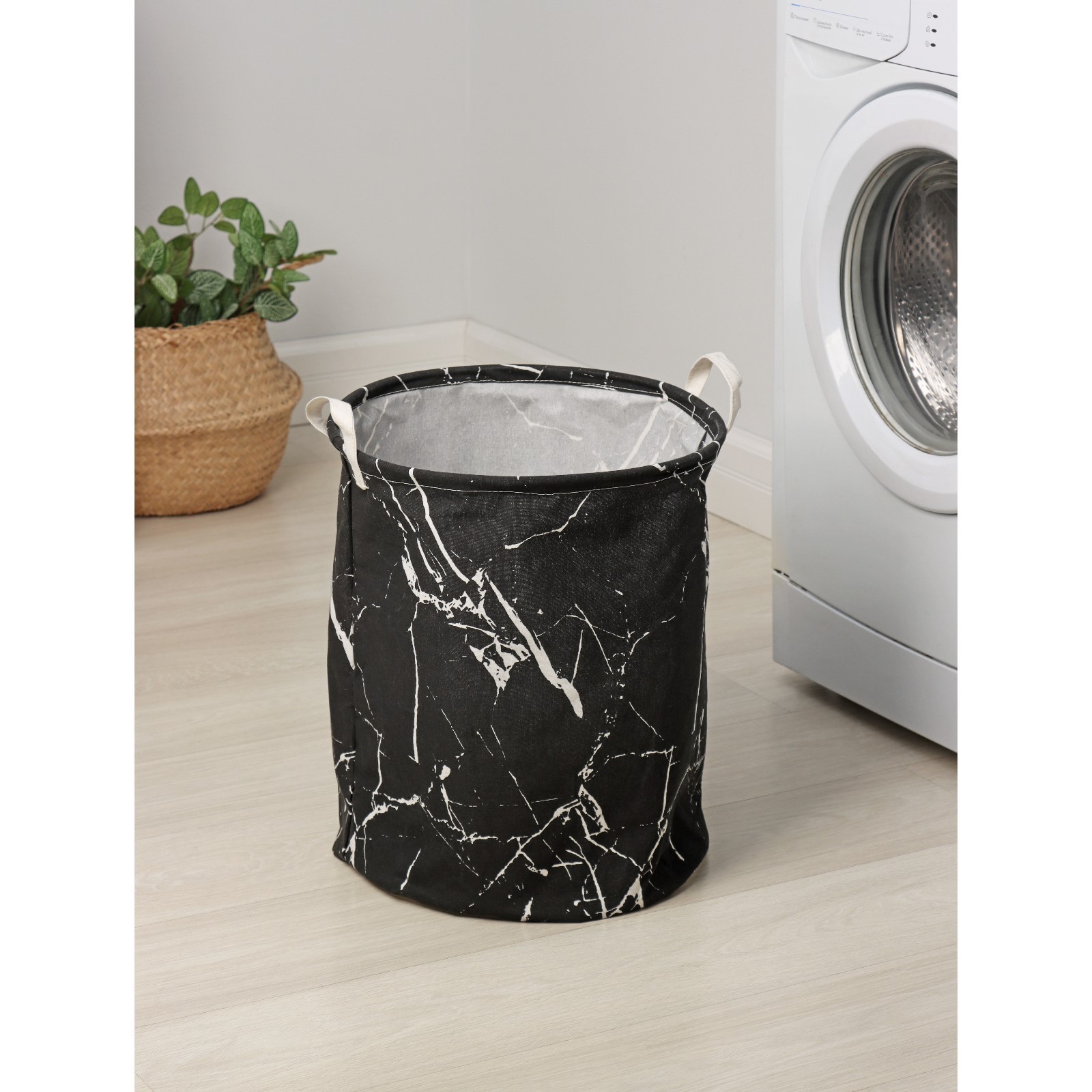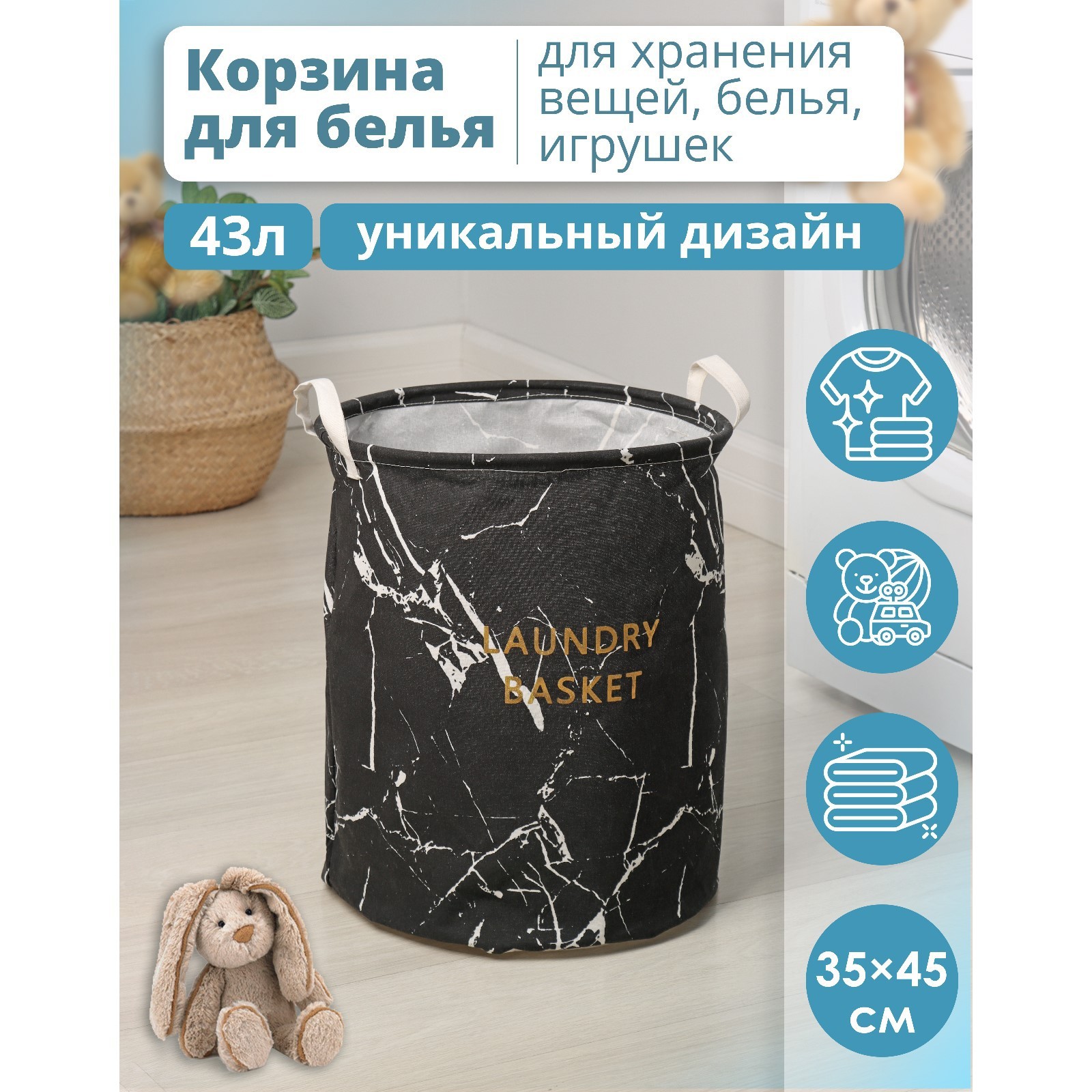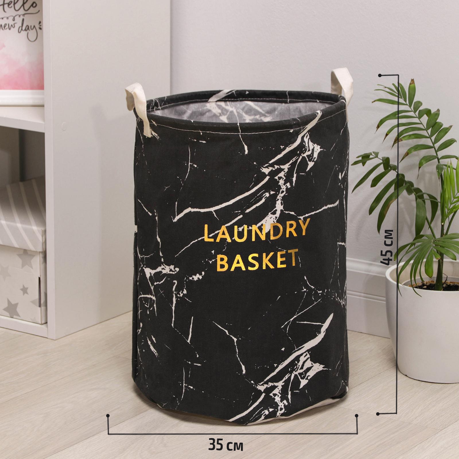 Корзина бельевая текстильная доляна «мрамор», 35x45 см, цвет чёрный