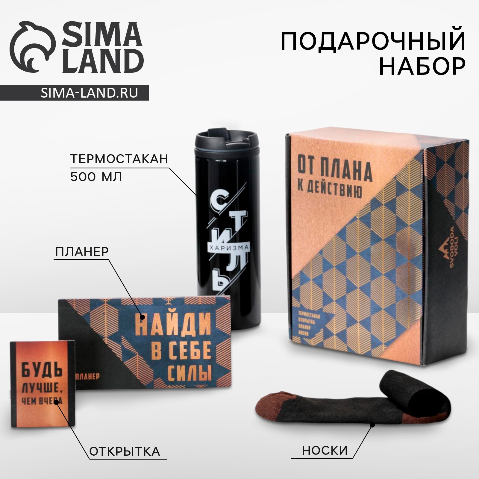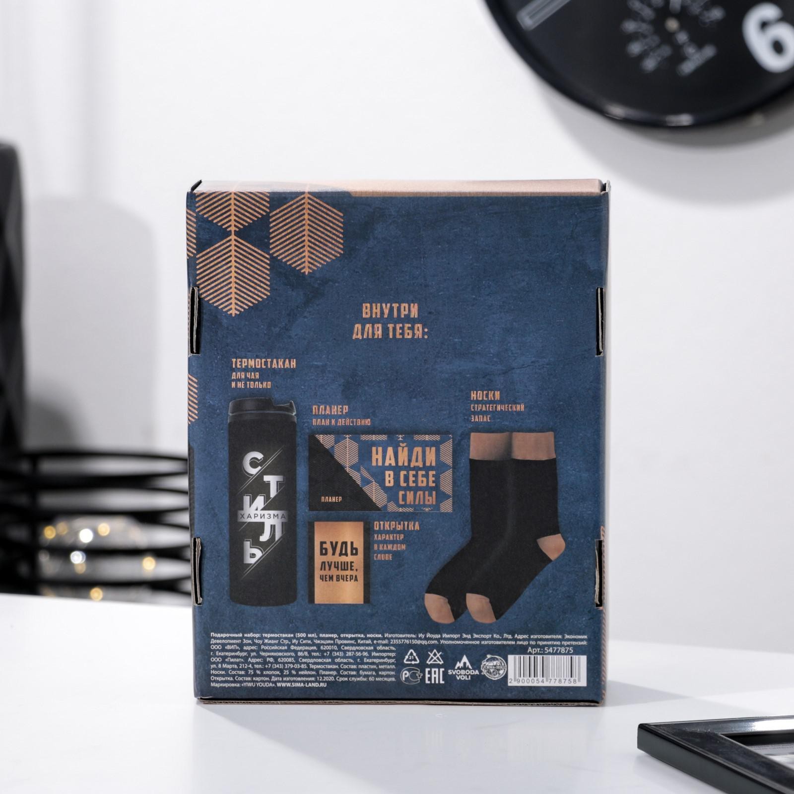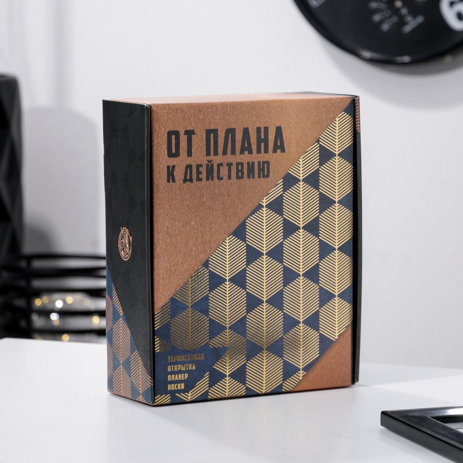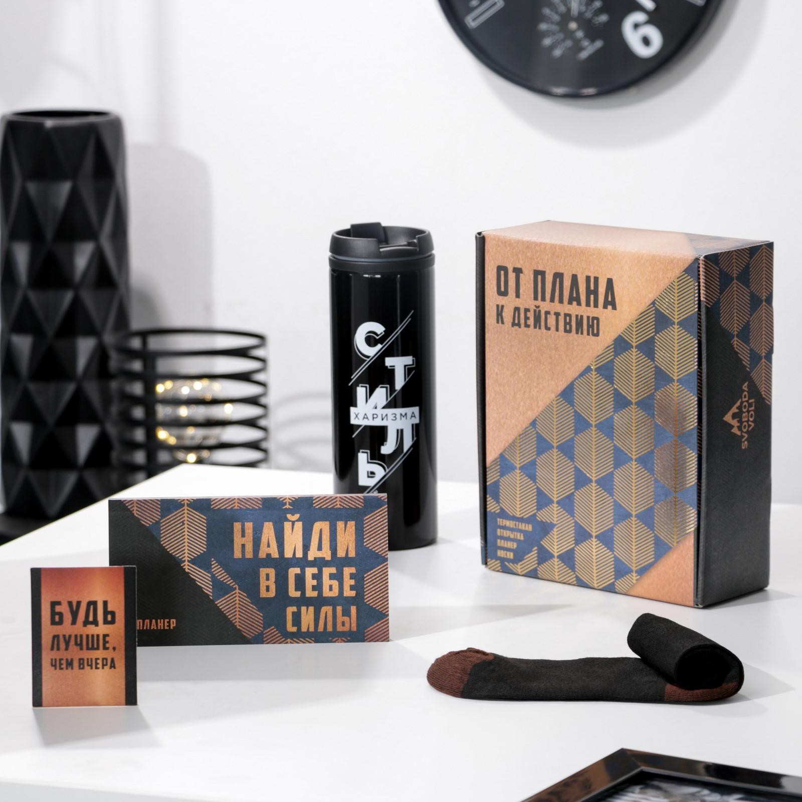 Подарочный набор «от плана к действию», термостакан, планер, открытка, носки