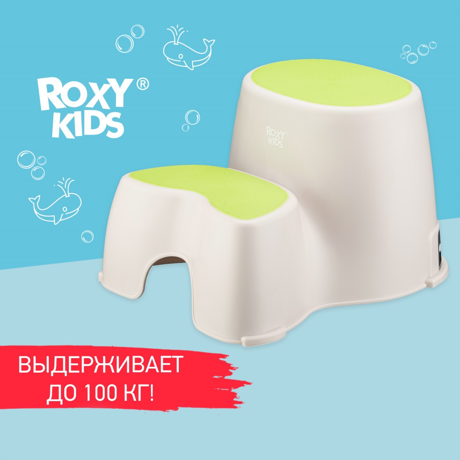 Подставка детская "ступенька", цвет зеленый. Детская ступенька для унитаза в виде кита поможет приучить подрастающего малыша к самостоятельности. Она поможет усадить его на унитаз, приподнимет на нужный уровень для чистки зубов у раковины и позволит добраться до любых высоких поверхностей. Кроме того, ступеньку можно использовать как многофункциональный стул для мамы и малыша. Система ребер жесткости в основании обеспечит максимальную прочность и надежность, потому что ступенька выдерживает вес более 100 кг. Прорезиненное покрытие ступенек исключает скольжение детских ножек, тактильно приятно и обеспечивает массажный эффект. Защитные накладки в нижней части ступеньки обеспечивают устойчивость конструкции. Благодаря интересному дизайну в виде кита можно применять игровой момент при приучении ребенка к гигиеническим процедурам с использованием ступеньки. В ассортименте ROXY-KIDS имеются несколько цветов данной лесенки-ступеньки. Цвет: Серый Цвет: Зелёный Для кого: Унисекс Ширина, см: 39 Высота, см: 24 Глубина, см: 32 parts count: 0 Maксимальная нагрузка, кг: 100 Вес, г: 783 Материал корпуса: Пластик Возраст: Детский Материал: Пластик Антискользящие ножки: Да Особенность: Стульчик-лесенка Температурное ограничение: Нет  развернуть описание ▼