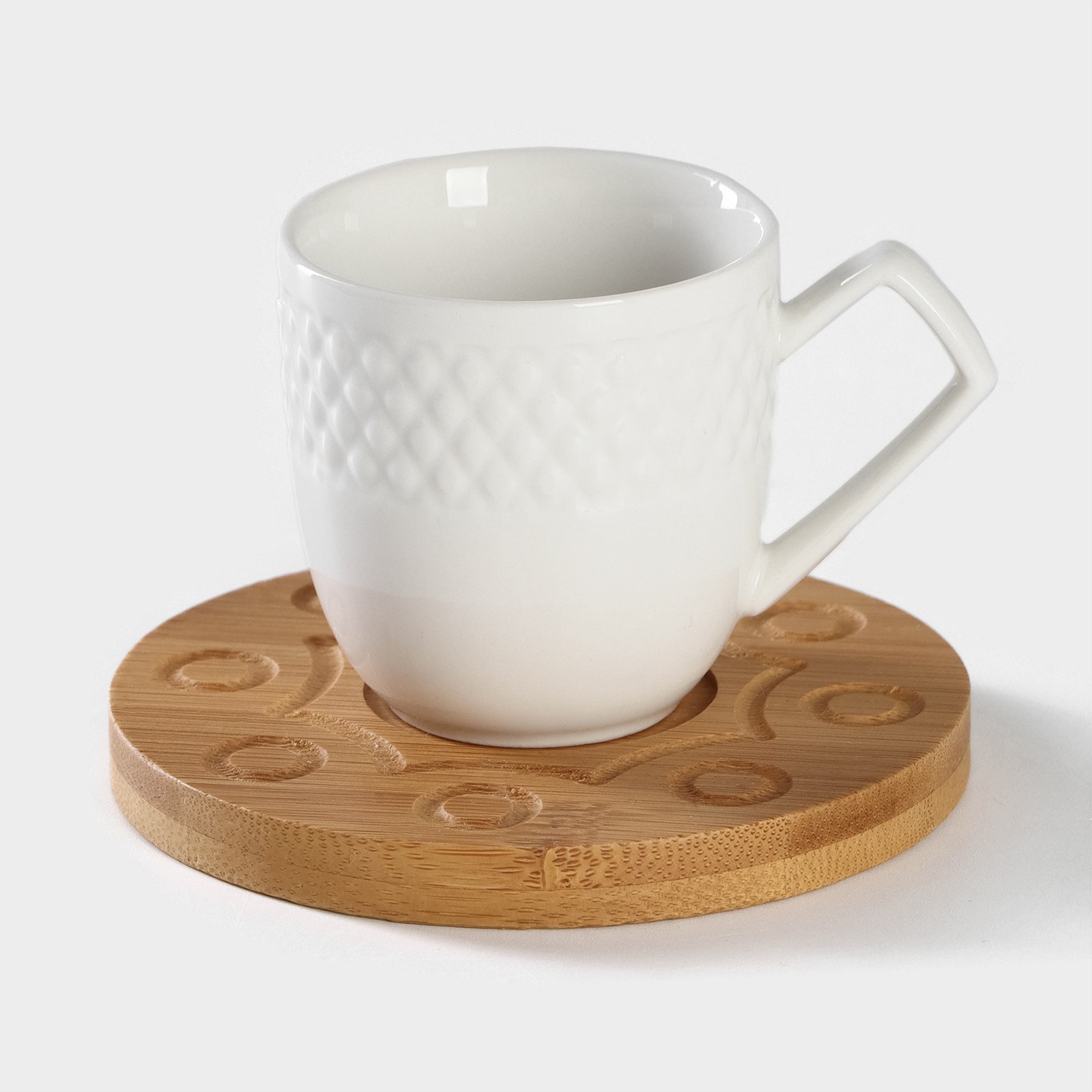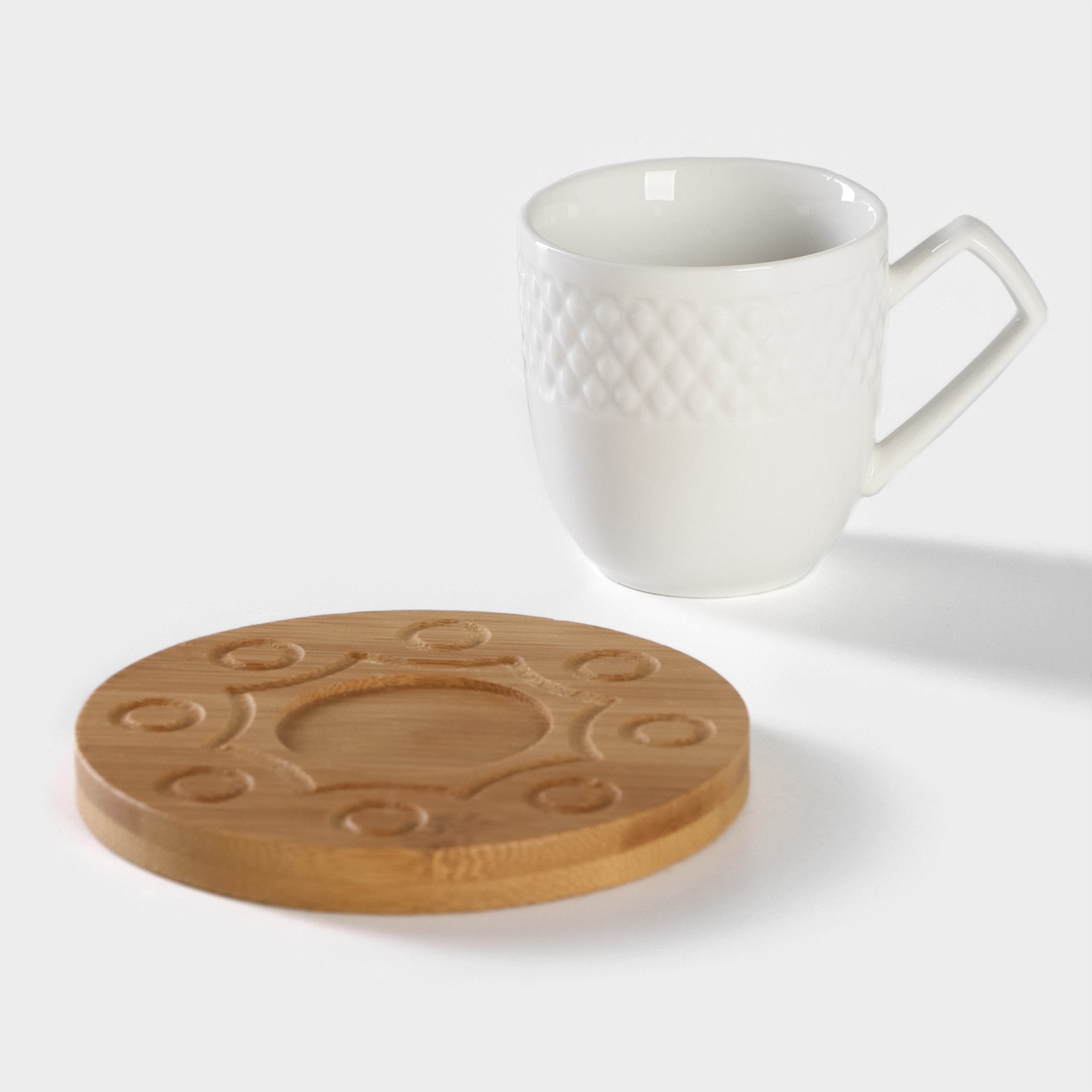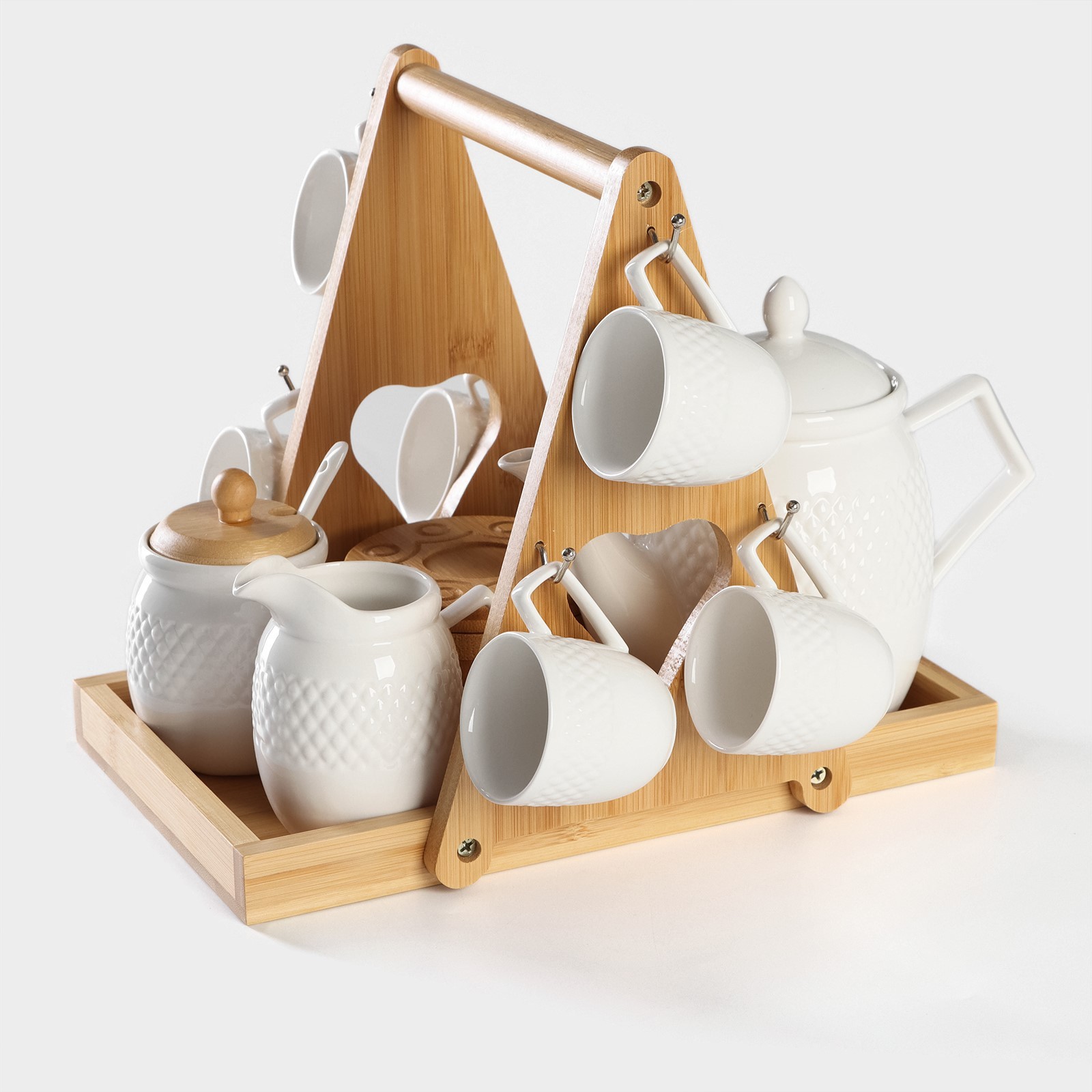 Набор кофейный фарфоровый на бамбуковой подставке Bellatenero, 15 предметов: чайник 850 мл, 6 кружек 70 мл, сахарница с ложкой 3
