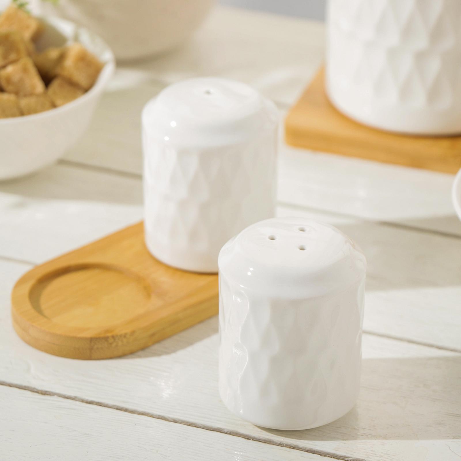 Набор фарфоровый для специй на деревянной подставке Bellatenero «герда», 2 предмета: солонка 85 мл, перечница 85 мл, цвет белый