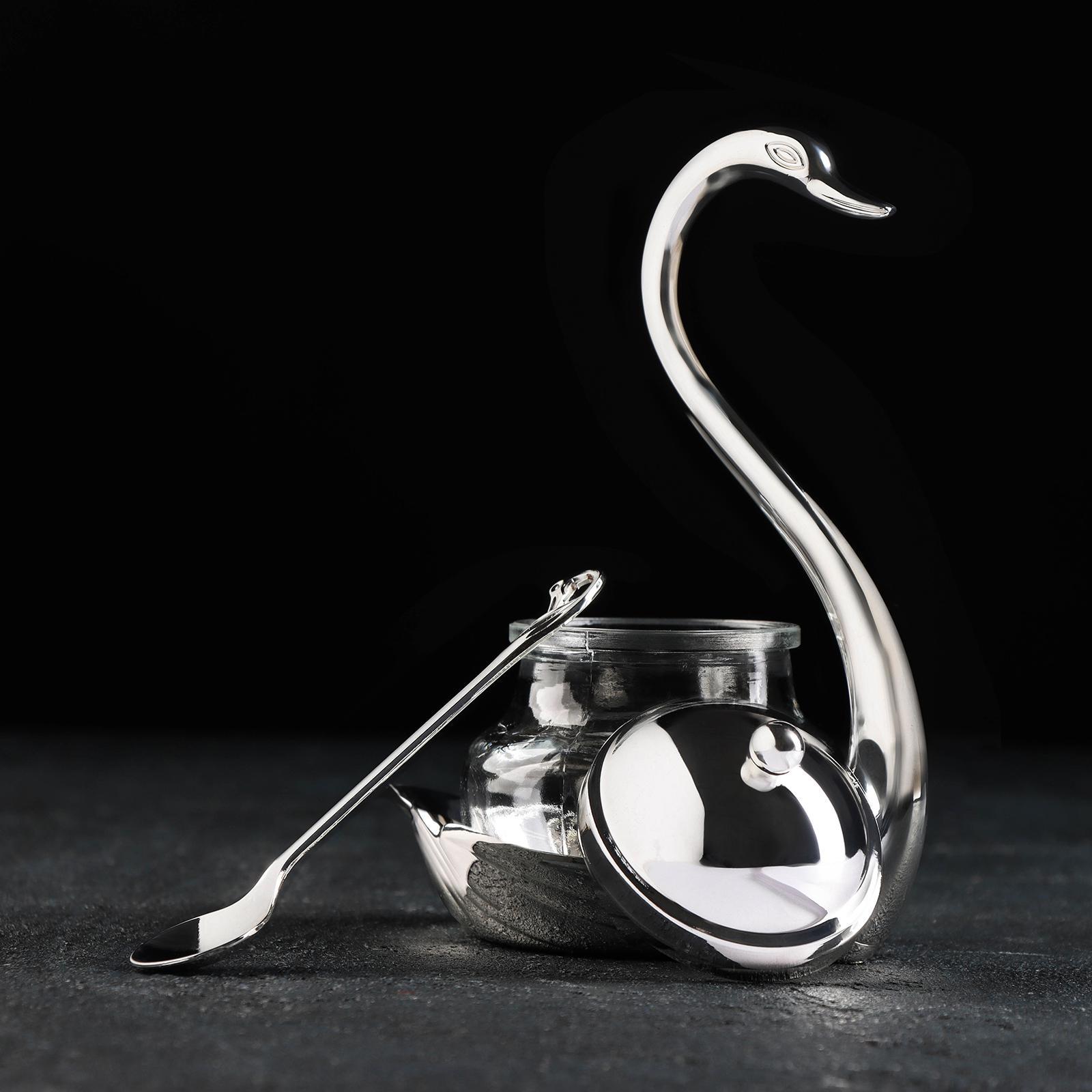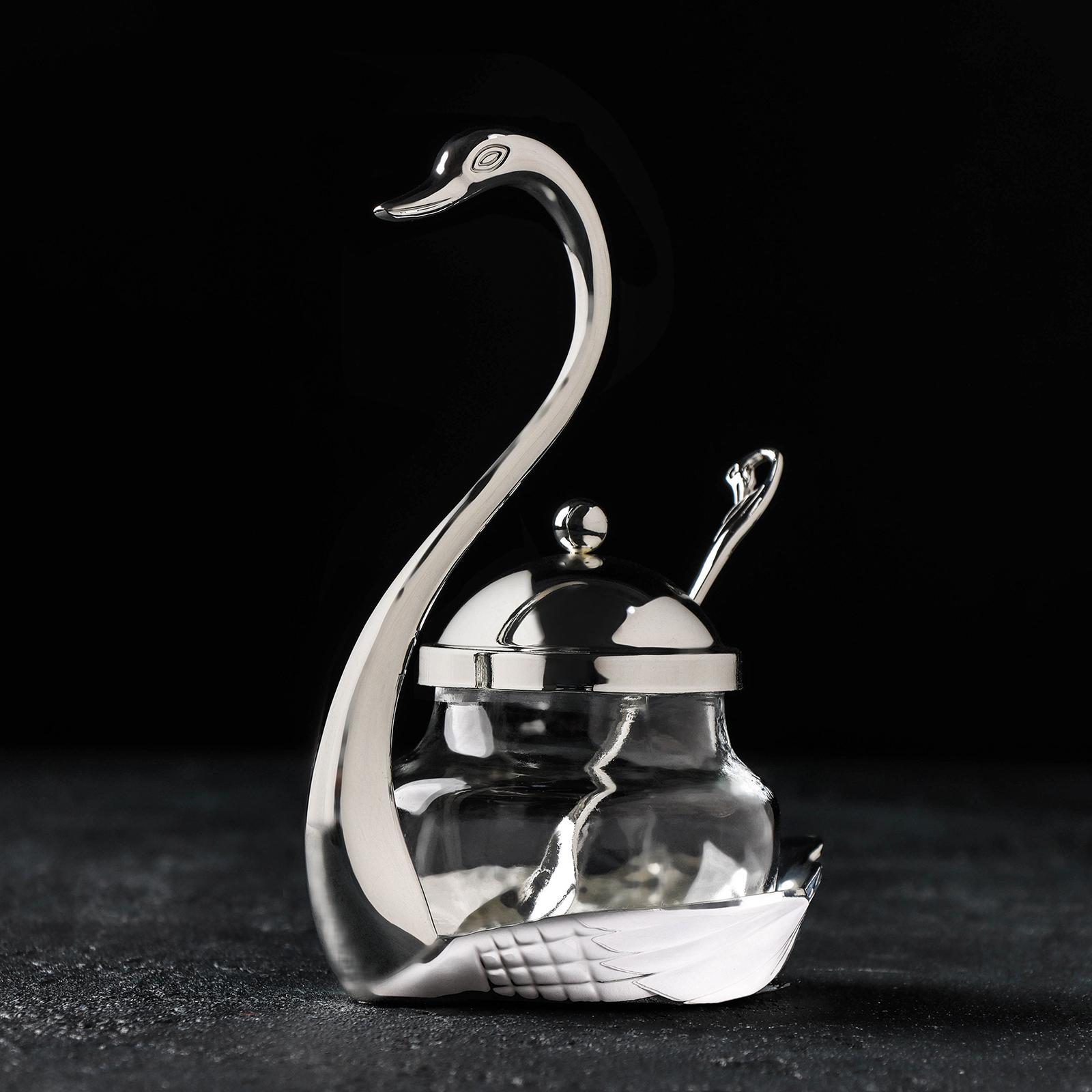 Сахарница «лебедь», 150 мл, 11,5x8x16 см, с ложкой, цвет металла серебряный