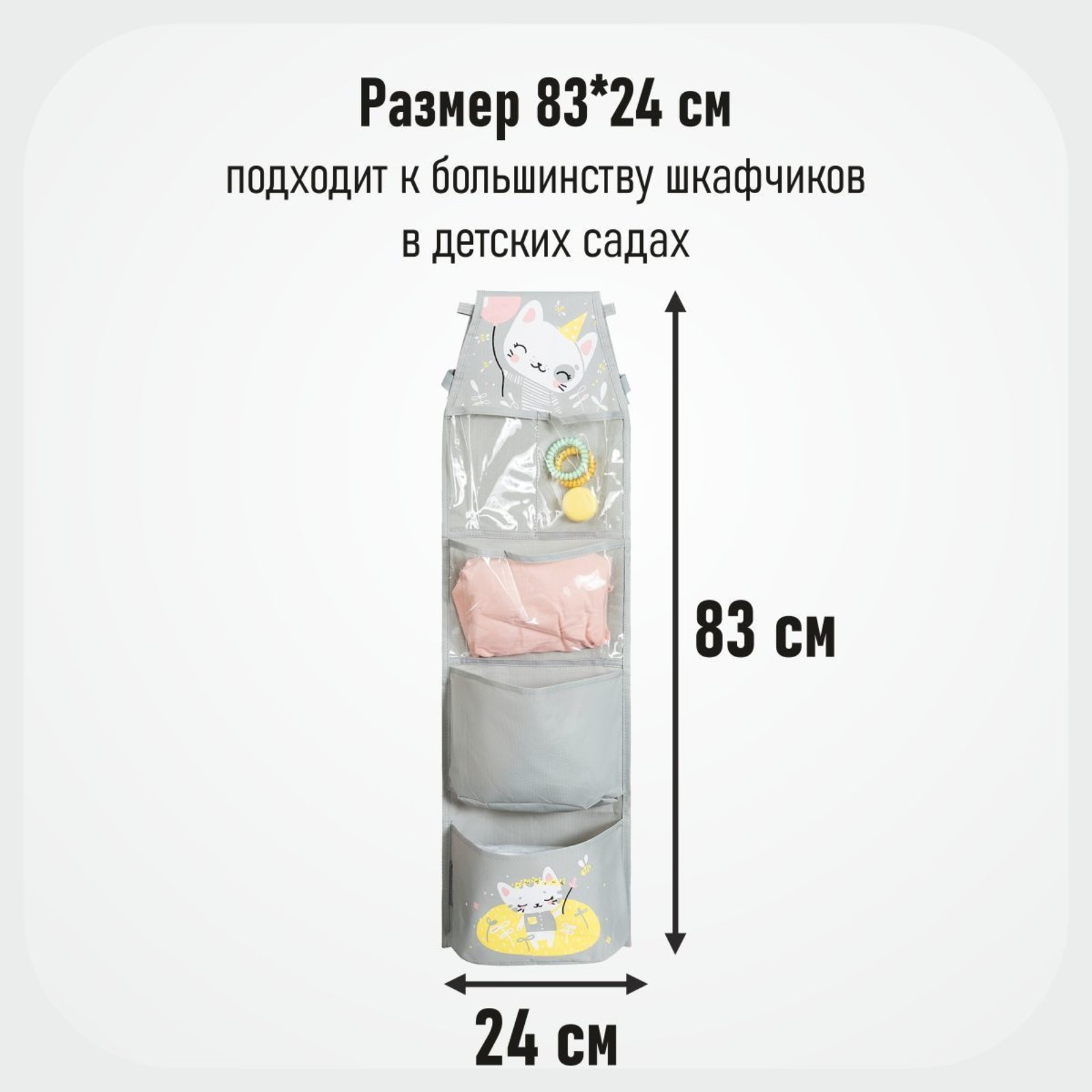 Кармашки в садик для детского шкафчика «котик», 83х24 см