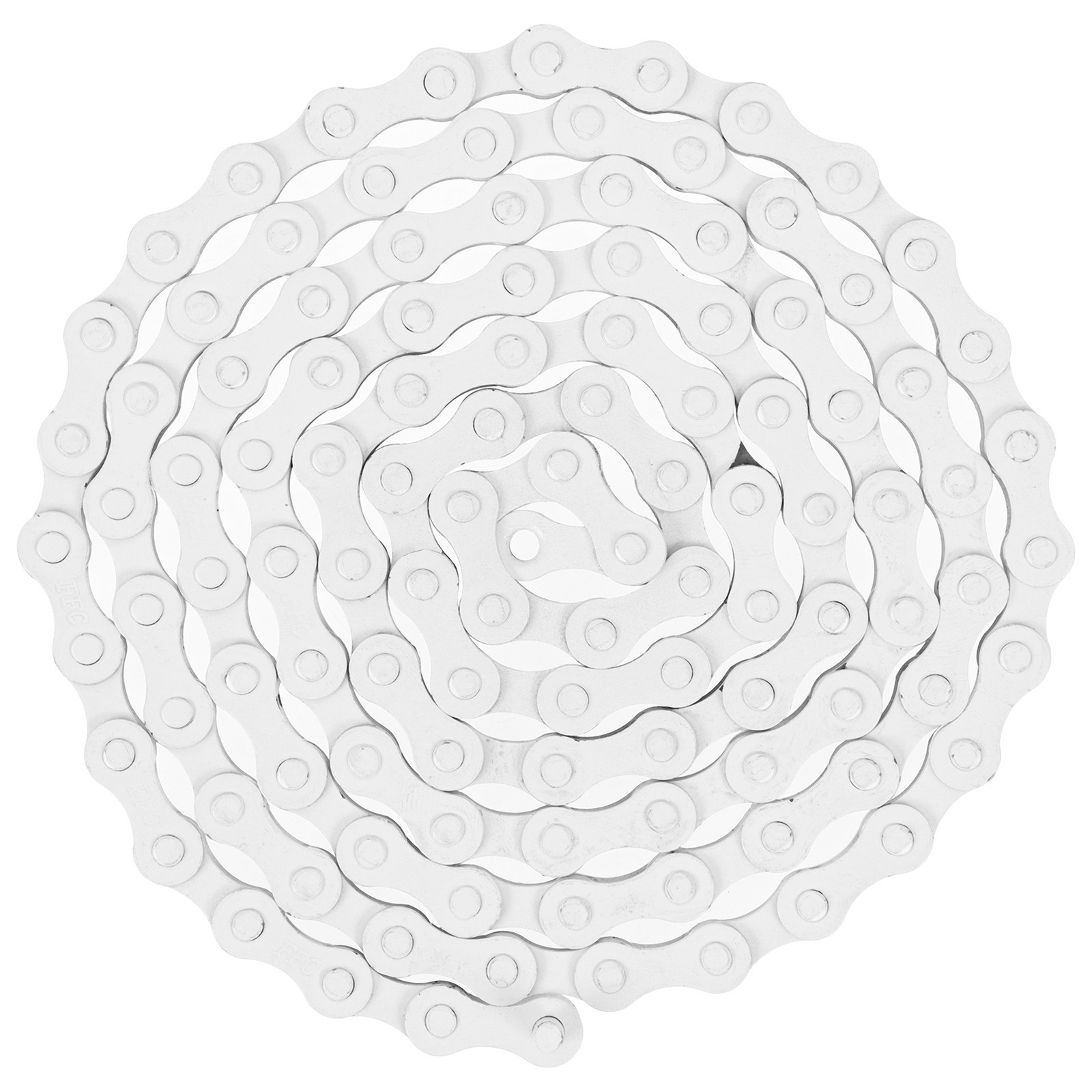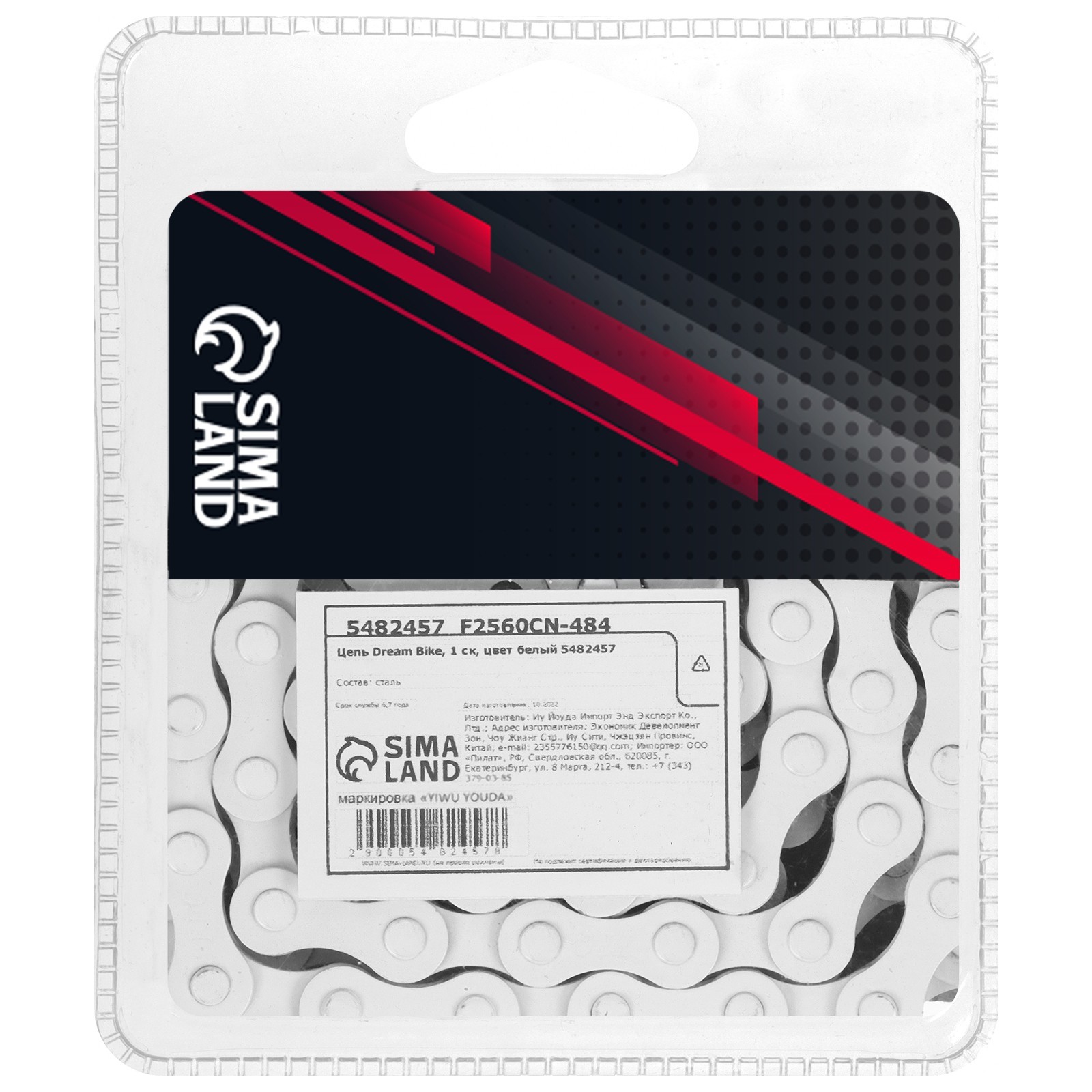 Цепь dream bike, 1 скорость. Универсальная велосипедная цепь на 1 скорость подходит для любых односкоростных велосипедов. Усилие на разрыв — 1500 кг. 112 звеньев. Цвет: Серебристый Количество скоростей: 1 Вид: Цепи  развернуть описание ▼