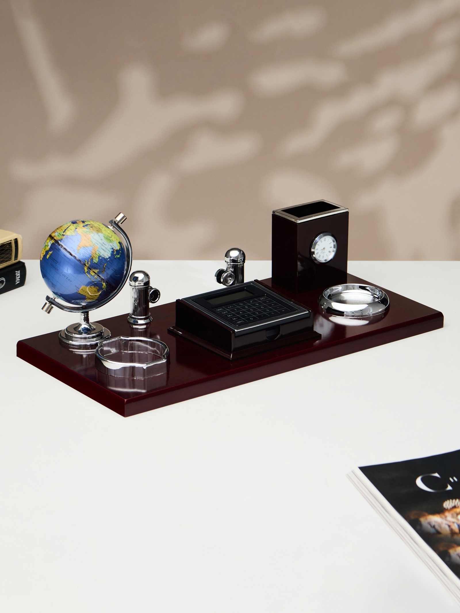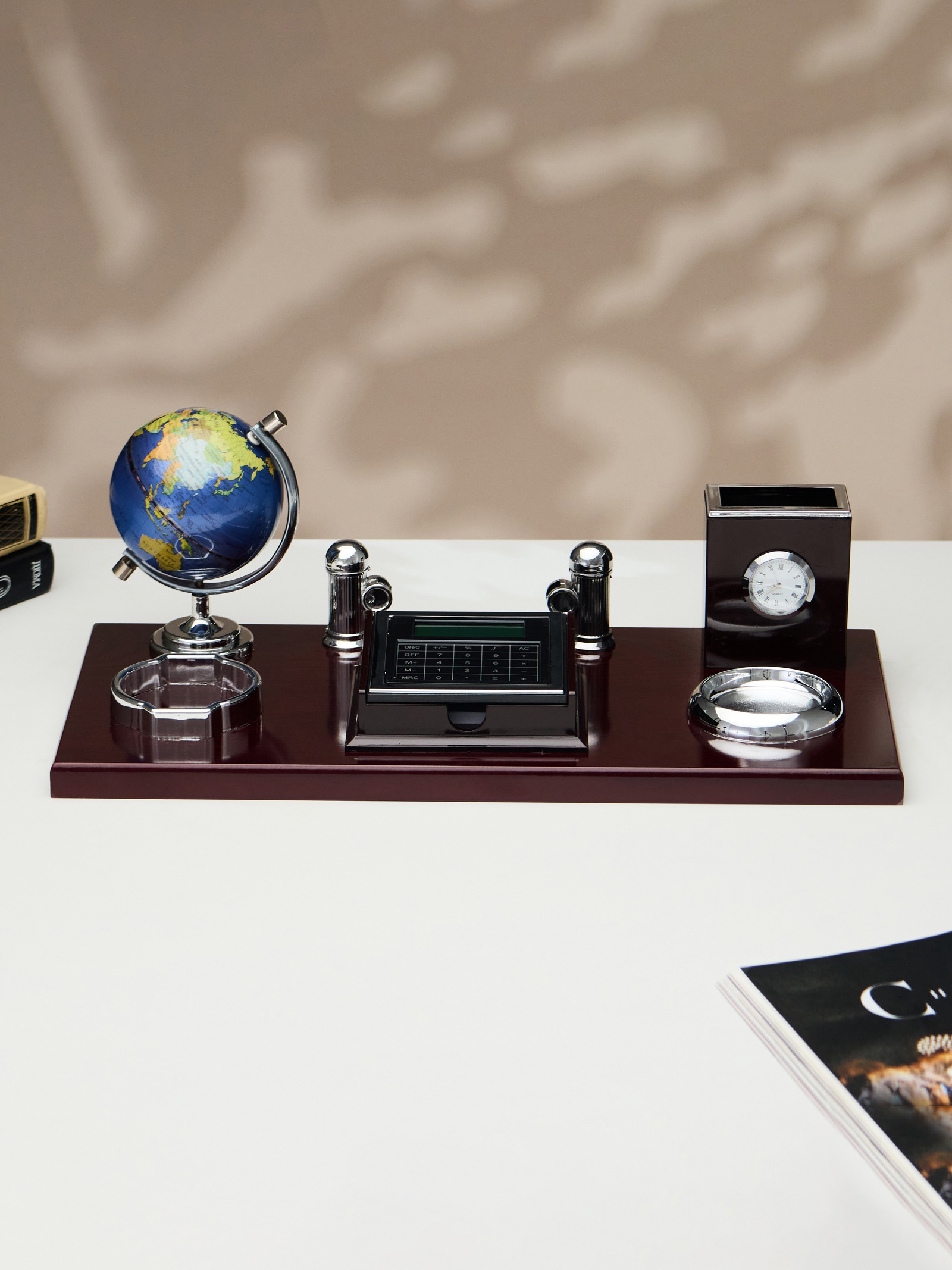 Набор настольный 7 в 1 (блок для бумаг, подставка для печати, мелочей, карандашница, часы, визитница, глобус)