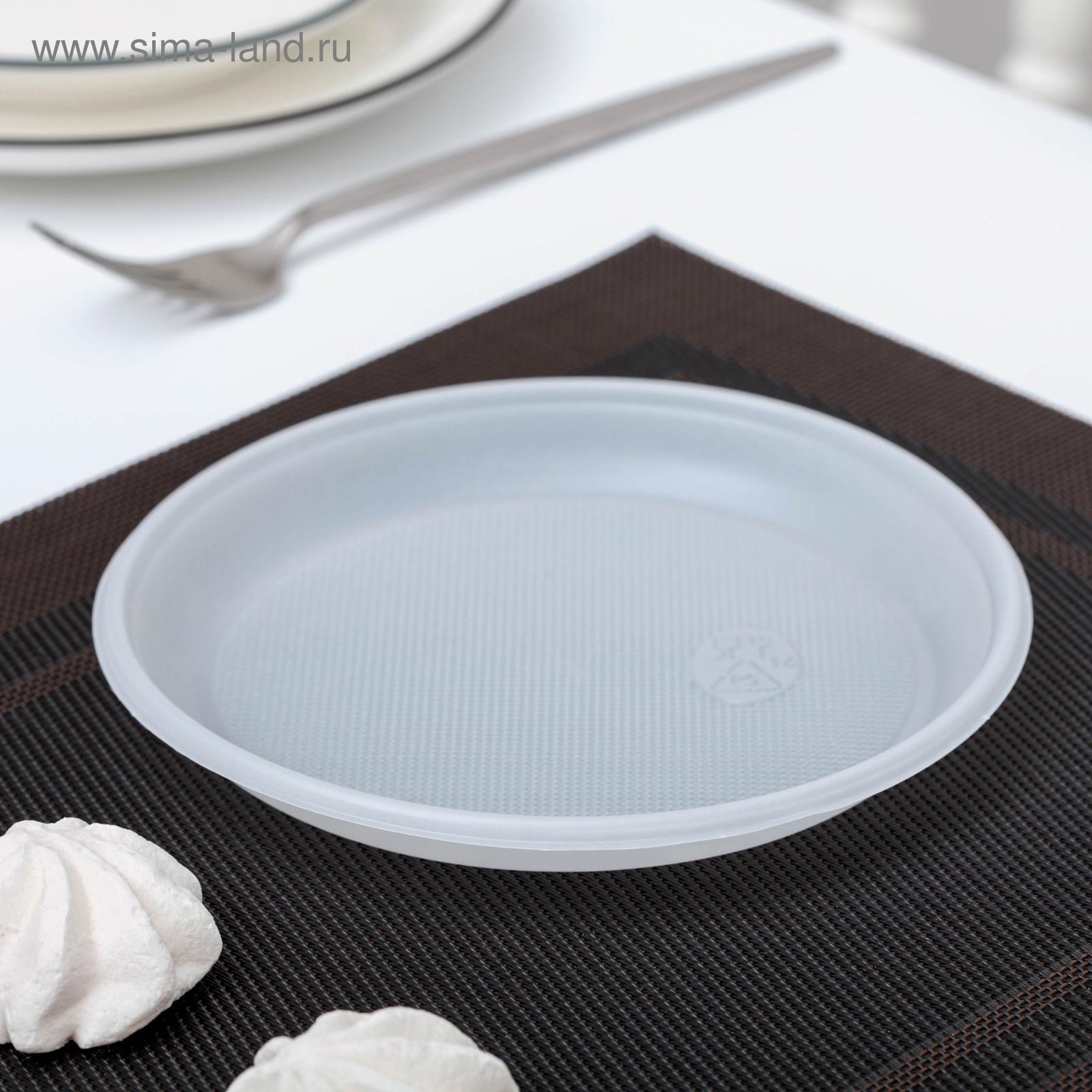 Набор пластиковых одноразовых тарелок, D=17 см, 10 шт, цвет белый