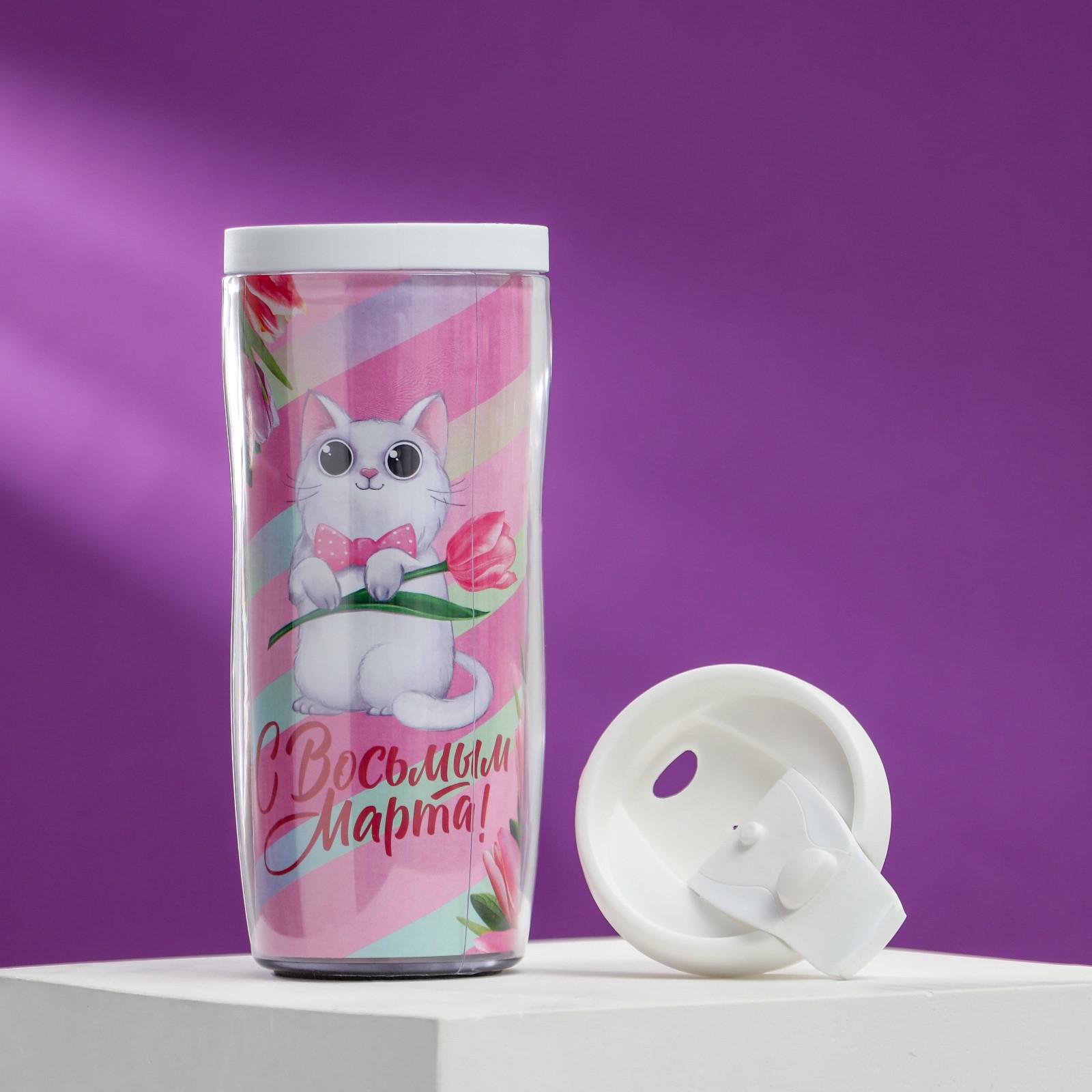 Термостакан со вставкой "8 марта", 350 мл, сохраняет тепло 2 ч