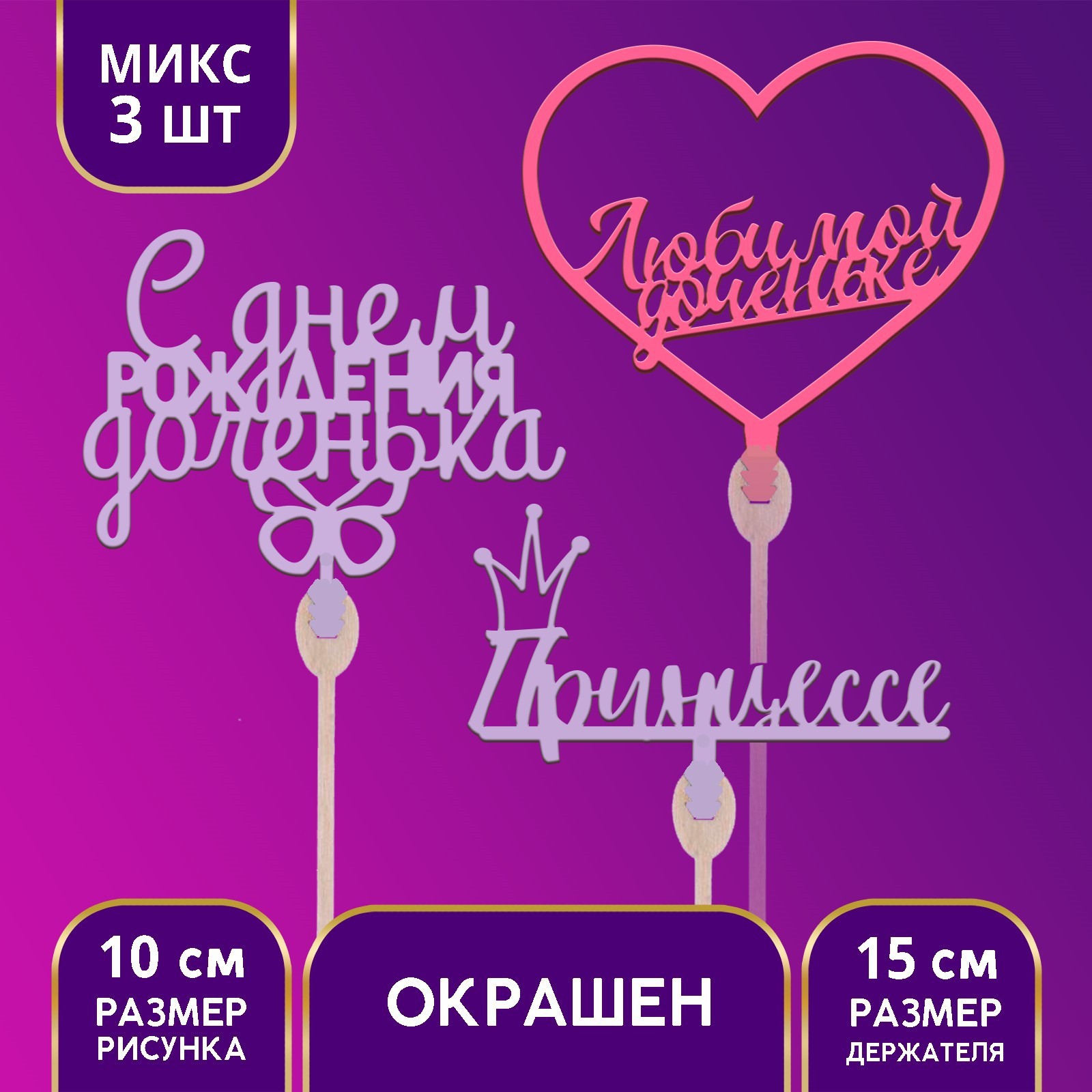 Топпер для торта «дочке» цветные, микс
