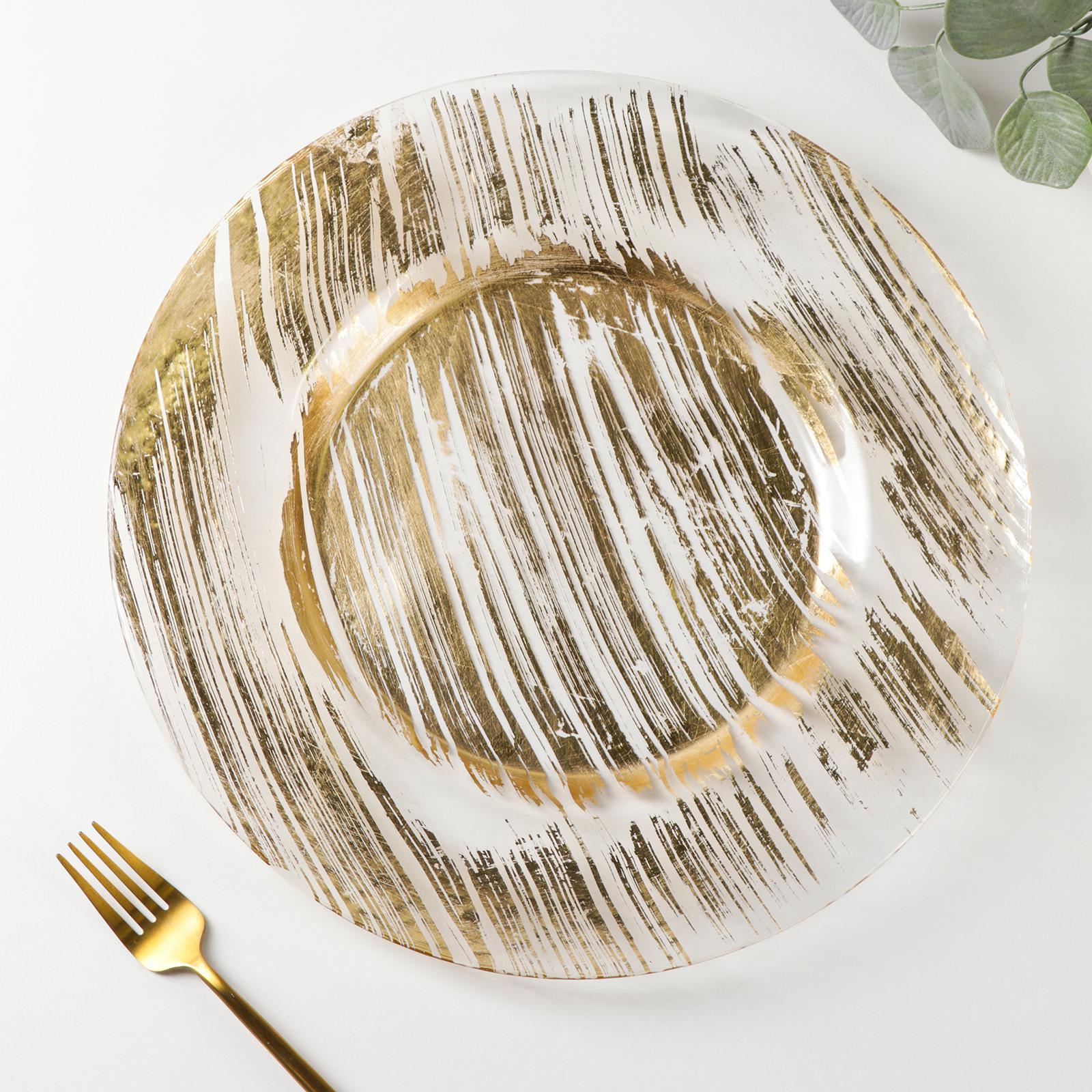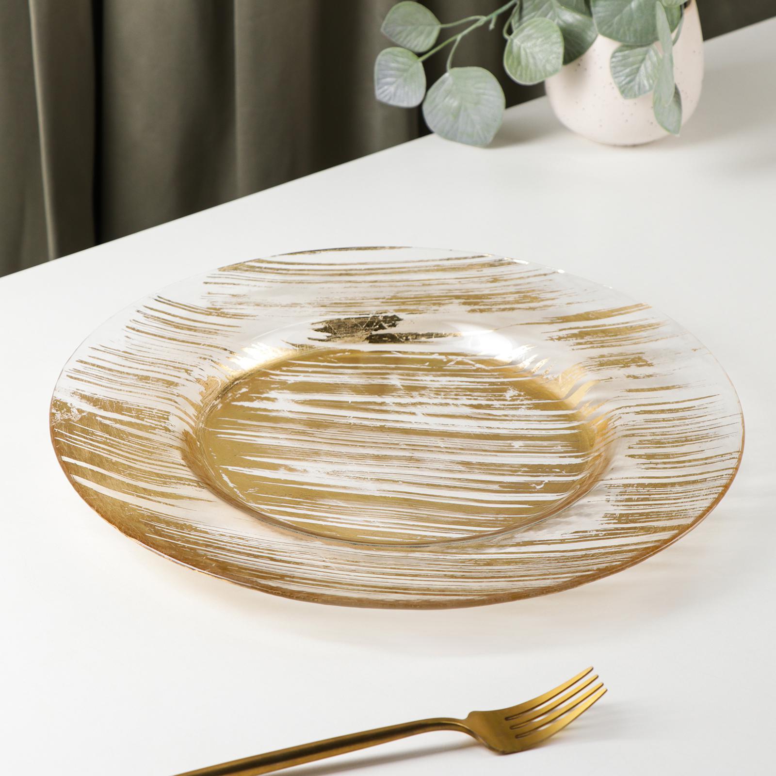 Тарелка стеклянная подстановочная Magistro «дэш», D=33 см, цвет золотой