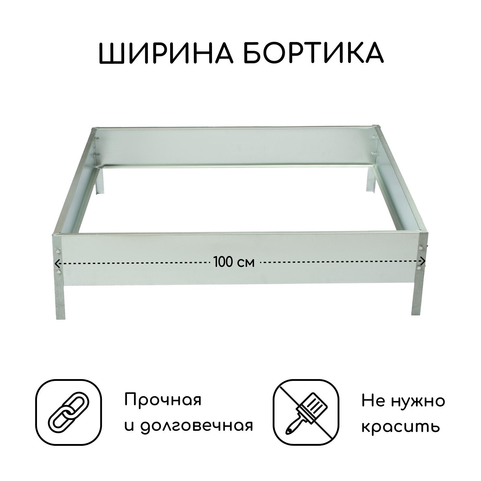 Клумба оцинкованная, 100 100 15 см, «квадро», Greengo
