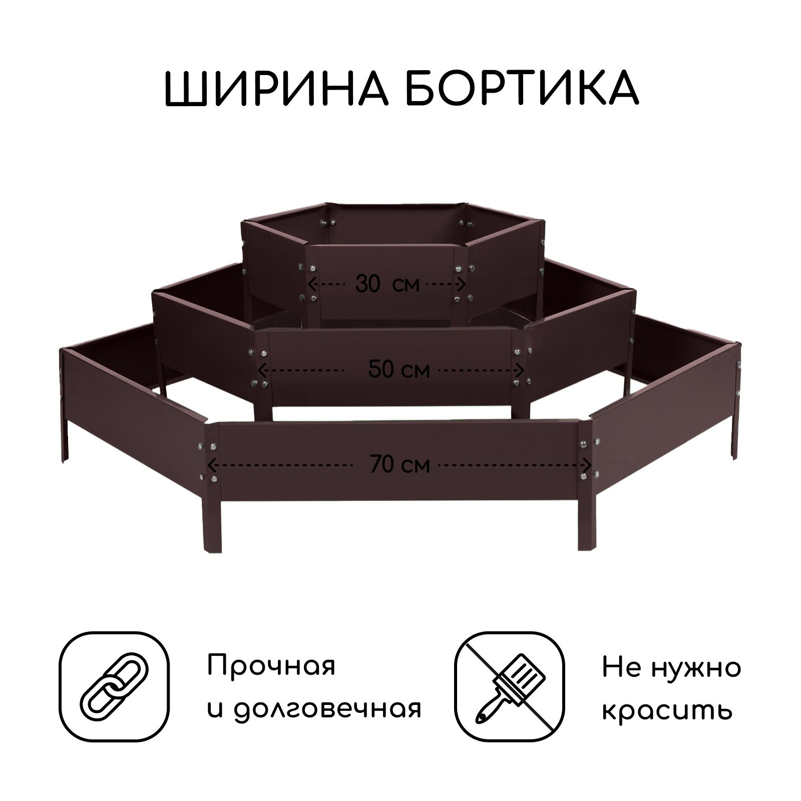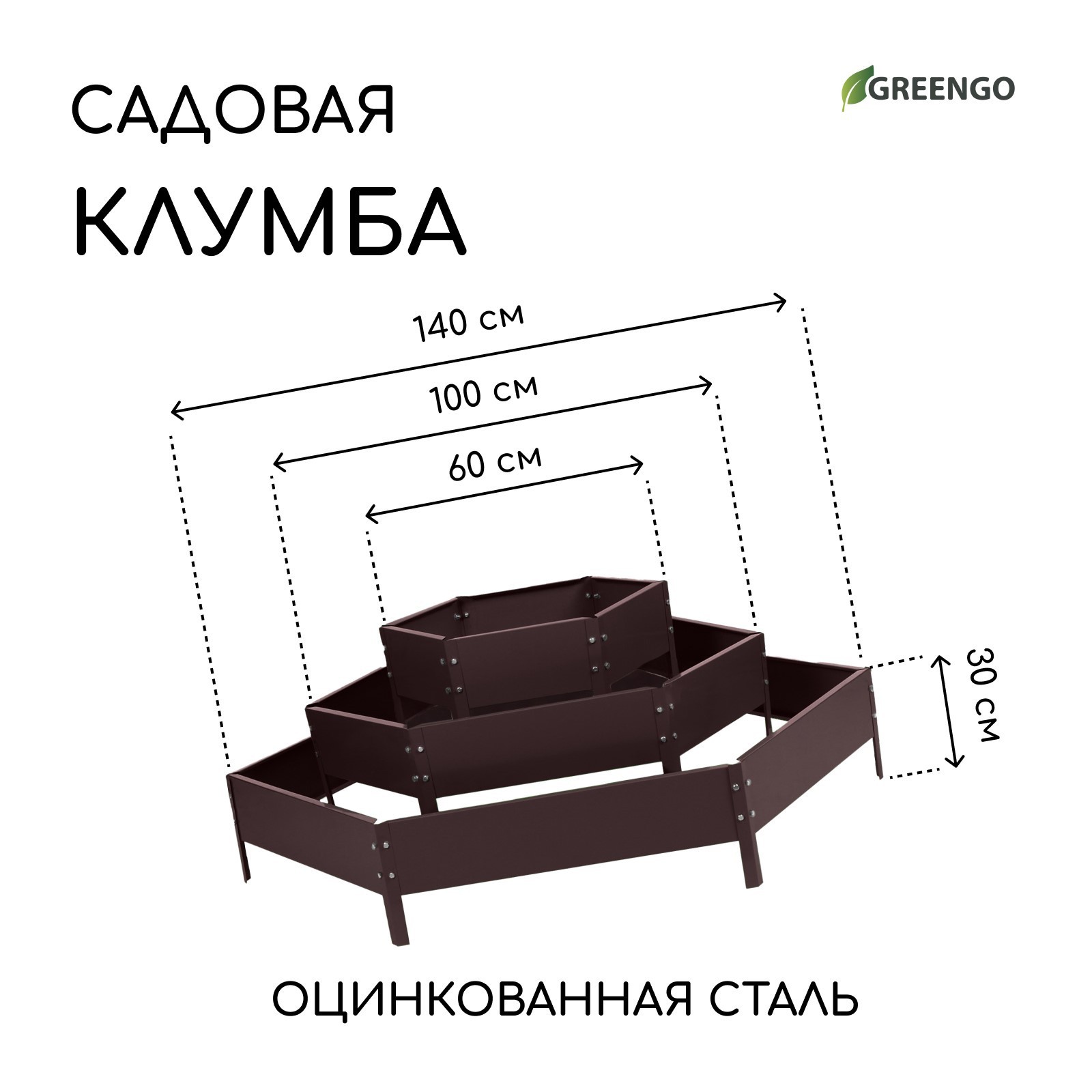 Клумба оцинкованная, 3 яруса, D=60–100–140 см, высота бортика 45 см, коричневая, Greengo