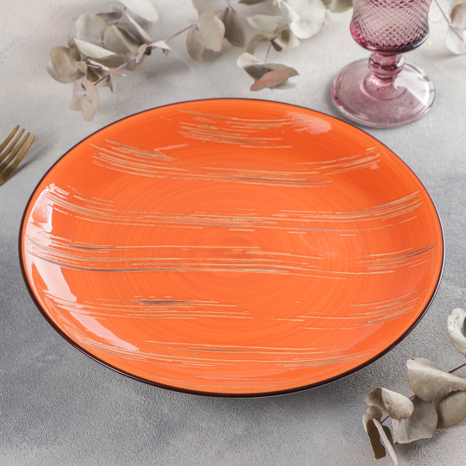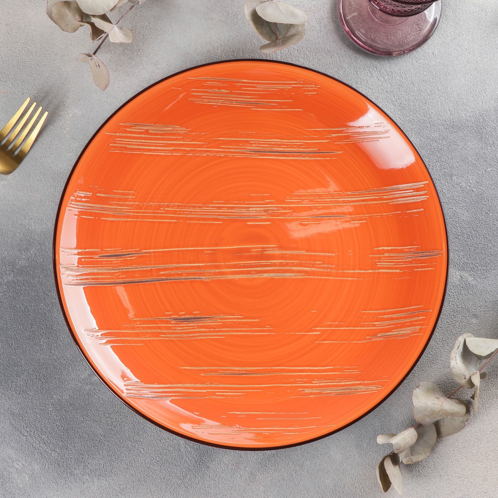Тарелка фарфоровая обеденная Wilmax Scratch, D=28 см, цвет оранжевый