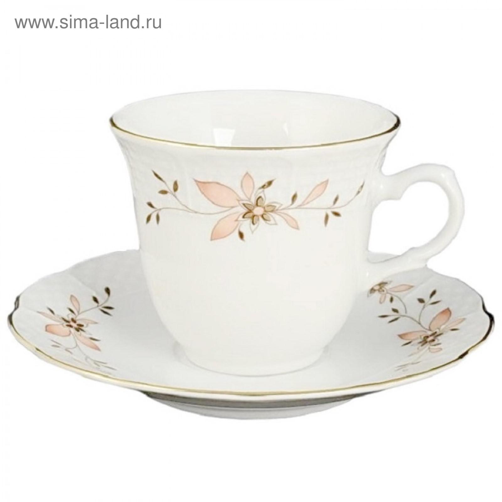 Чашка 225 мл с блюдцем 155 мм высокая Menuet, декор «золотые ветки, отводка золото»