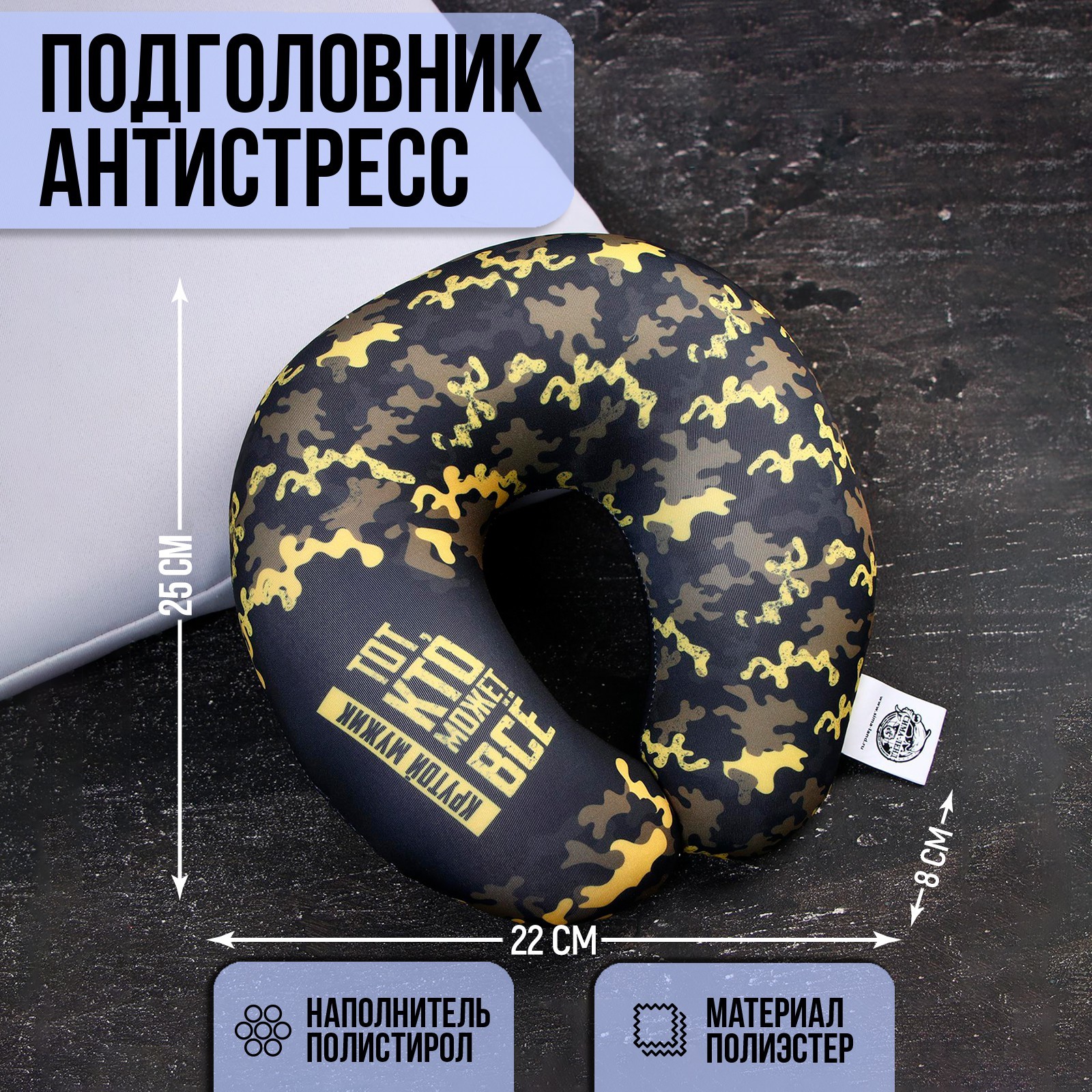 Подушка для путешествий антистресс «тот, кто может всё». Подголовник-антистресс — незаменимая вещь дома и в дороге. Изделие обеспечивает удобное расположение верхнего отдела позвоночника и способствует расслаблению мышц шеи. С таким аксессуаром удобно спать, а время в пути летит незаметно. Используйте принадлежность как игрушку-антистресс: маленькие гранулы пенополистирола внутри изделия разомнут пальчики и снимут напряжение. А красочный дизайн задаст настроение любому путешествию и подарит положительные эмоции. Отдыхайте с комфортом! Цвет: Камуфляж Для кого: Для мужчины Материал: Полиэстер Особенности: Антистресс Температурное ограничение: Нет Вид: Подголовники  развернуть описание ▼