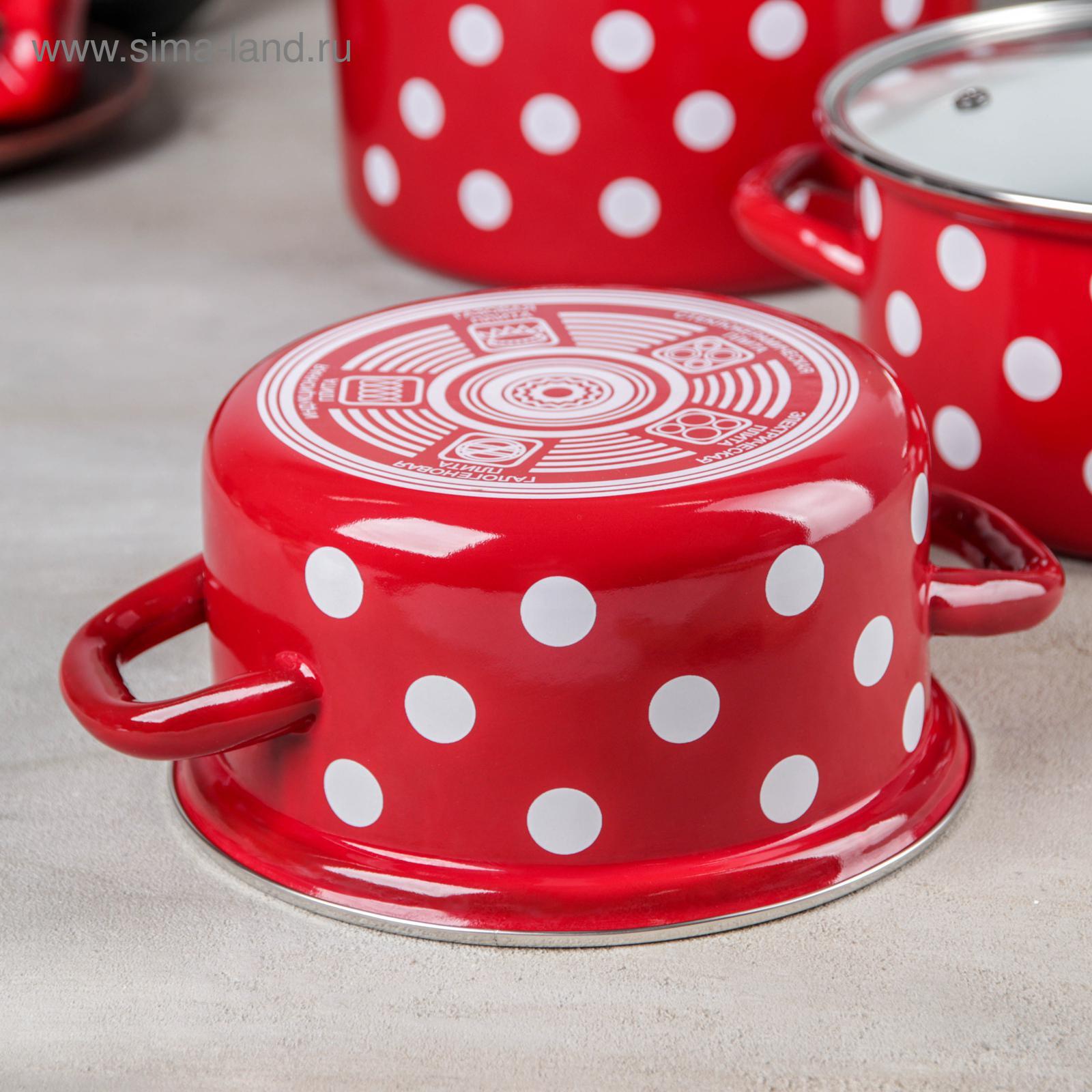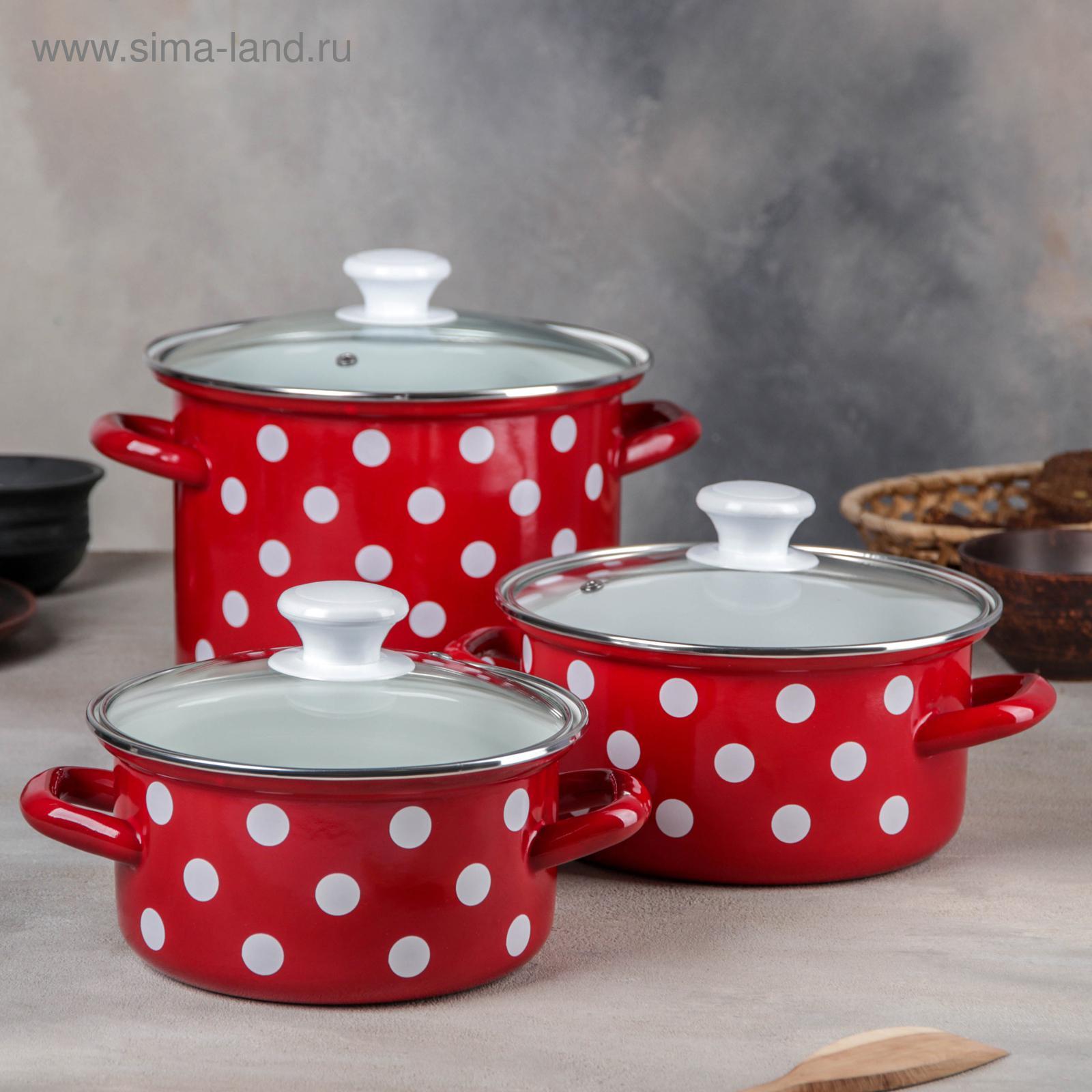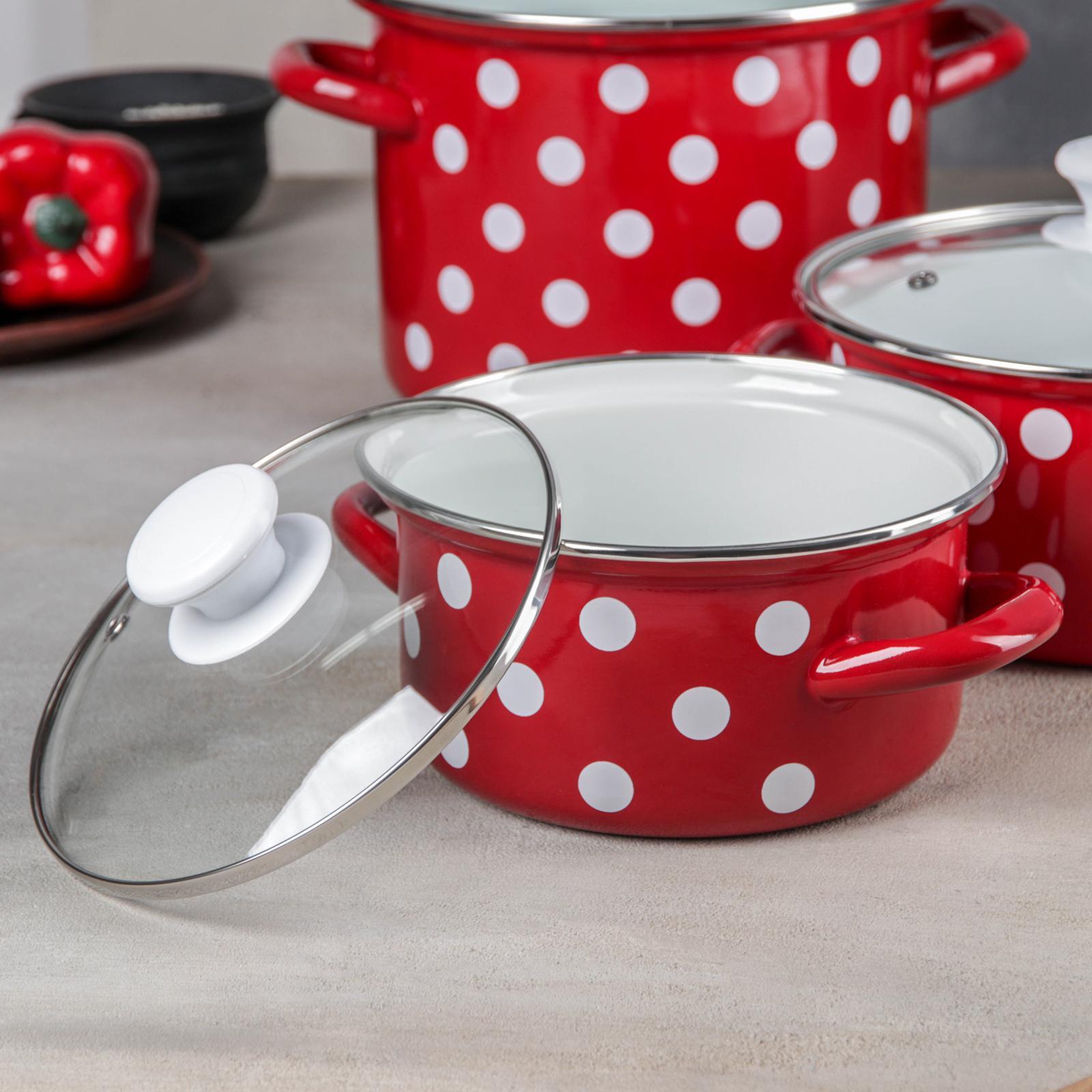 Набор кастрюль «белый горох», 3 предмета: 1,9 л, 2,5 л, 5 л, стеклянные крышки, индукция