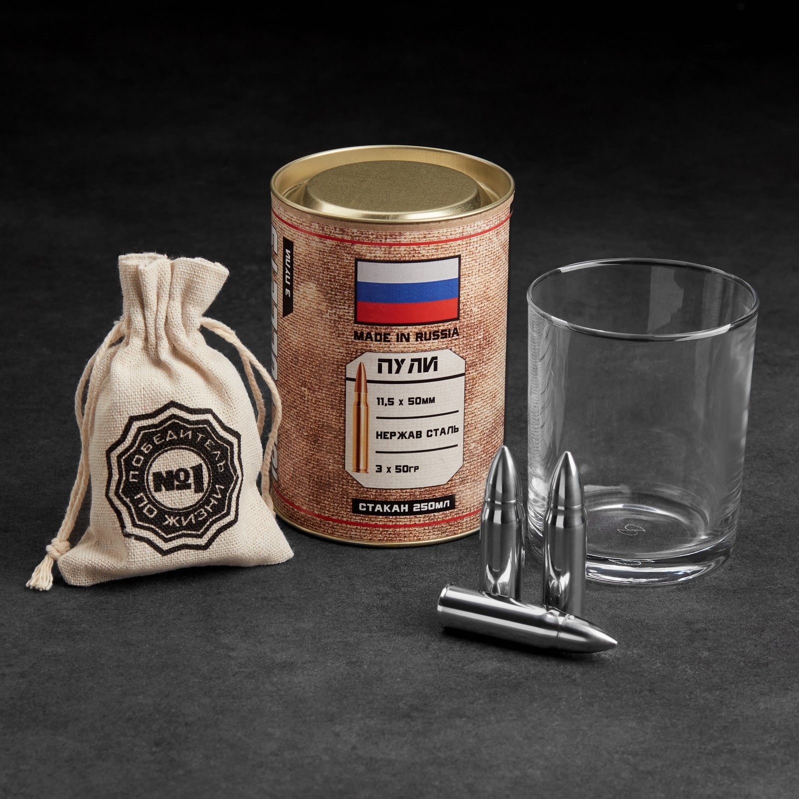Набор "ice bullets", стакан 250 мл, 3 пули-охладителя, мешочек. Раньше в виски было принято добавлять кубики льда, так как в охлаждённом виде этот напиток вкуснее. Но при таянии лёд разбавляет виски водой, ухудшая его вкусовые качества. Эта проблема будет решена, если заменить лёд специальными аксессуарами. Как работает пуля для виски? Стальные пули не имеют ни запаха, ни вкуса, и не вступают в химическое взаимодействие с напитком. Перед употреблением пулю на 1-2 часа помещают в морозильную камеру. Затем их кладут в стакан с напитком, и они медленно отдают свой холод напитку. Для достижения оптимальной температуры 16-18 градусов традиционно кладётся по 3 пули на стакан, и вкус виски становится мягким и насыщенным. Цвет: Прозрачный Цвет: Серебристый Для кого: Унисекс Для кого: Для мужчины В наборе, шт.: 4 Объём, мл: 250 Вид упаковки: Банка металлическая Материал: Металл Материал: Стекло Составляющие набора: Камни для виски Род войск: Универсальный Температурное ограничение: Нет Можно мыть в посудомоечной машине: Да Можно использовать в СВЧ-печи: Нет Текстура: Гладкая Особенности: Без особенностей Для горячего: Нет  развернуть описание ▼