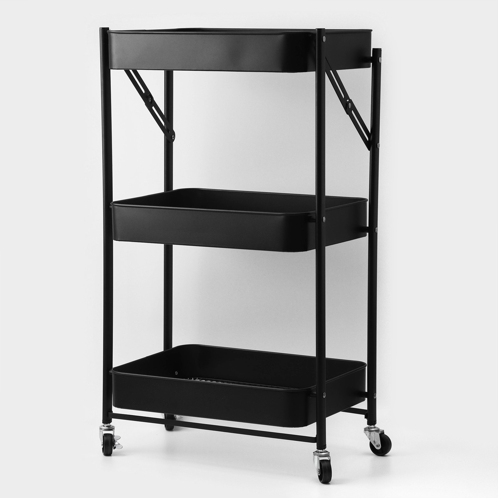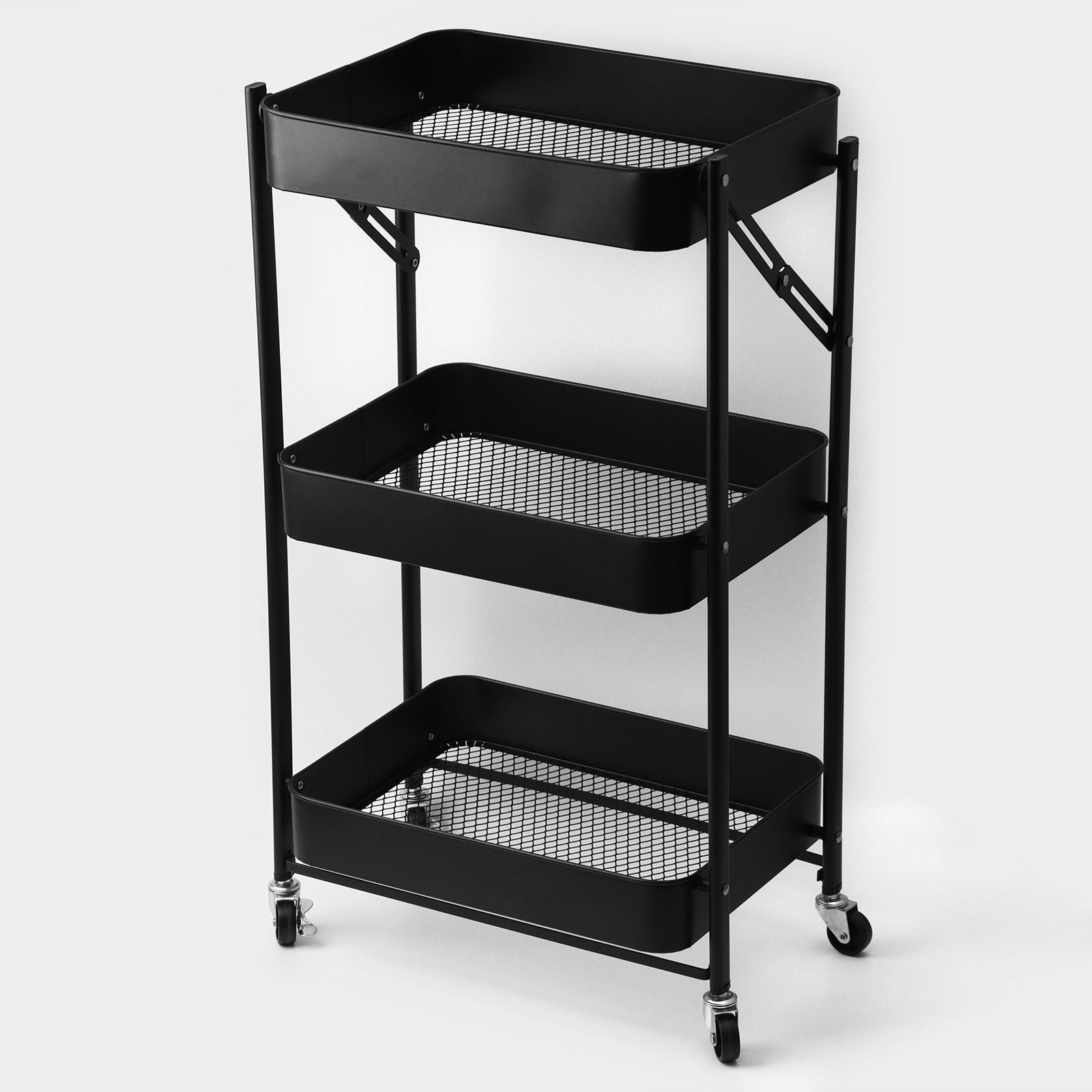 Этажерка напольная 3-х ярусная, 45.5 29.5 77.5 см, на колёсиках, чёрная. Цвет:Чёрный|Количество секций:3|На колёсиках:Да|Материал:Металл|Страна:Китай