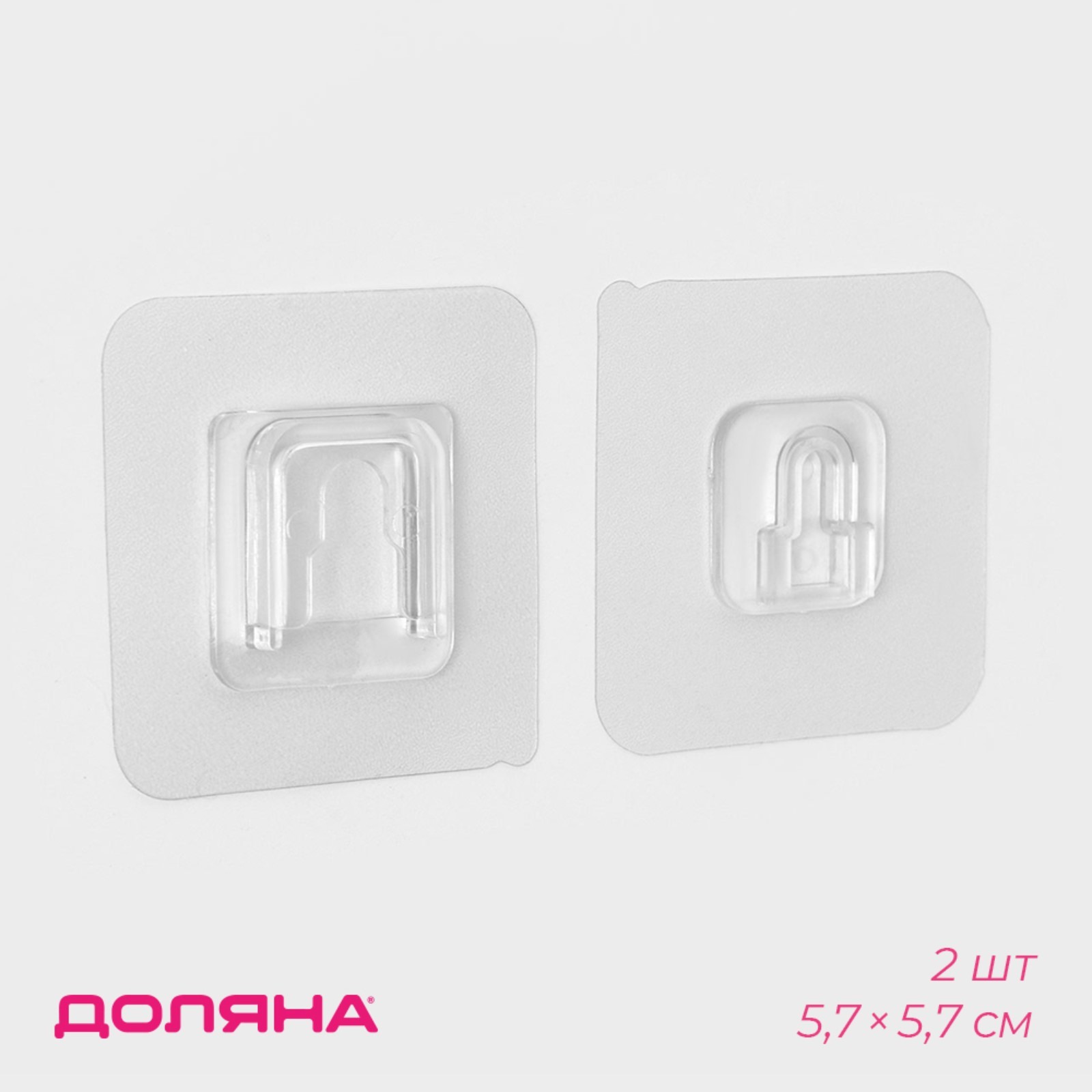 Крючки держатели двойные самоклеящиеся доляна, набор 2 шт, 5,7x5,7x1 см, прозрачный