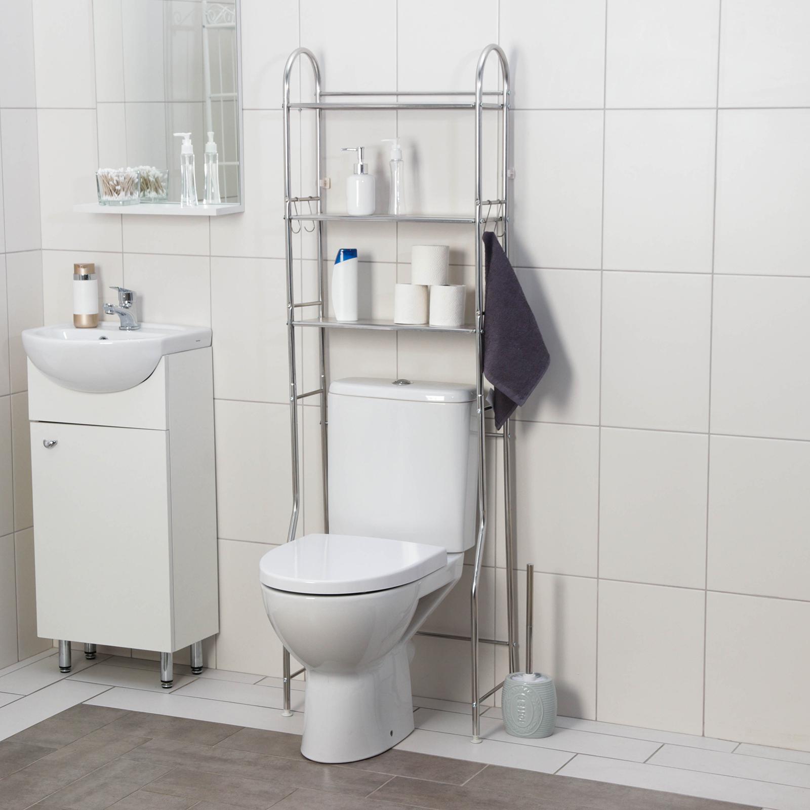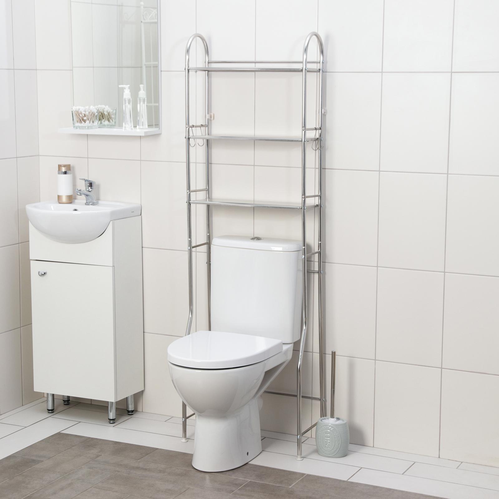 Стеллаж над унитазом, 3 яруса, 48x25x155 см, цвет серебряный