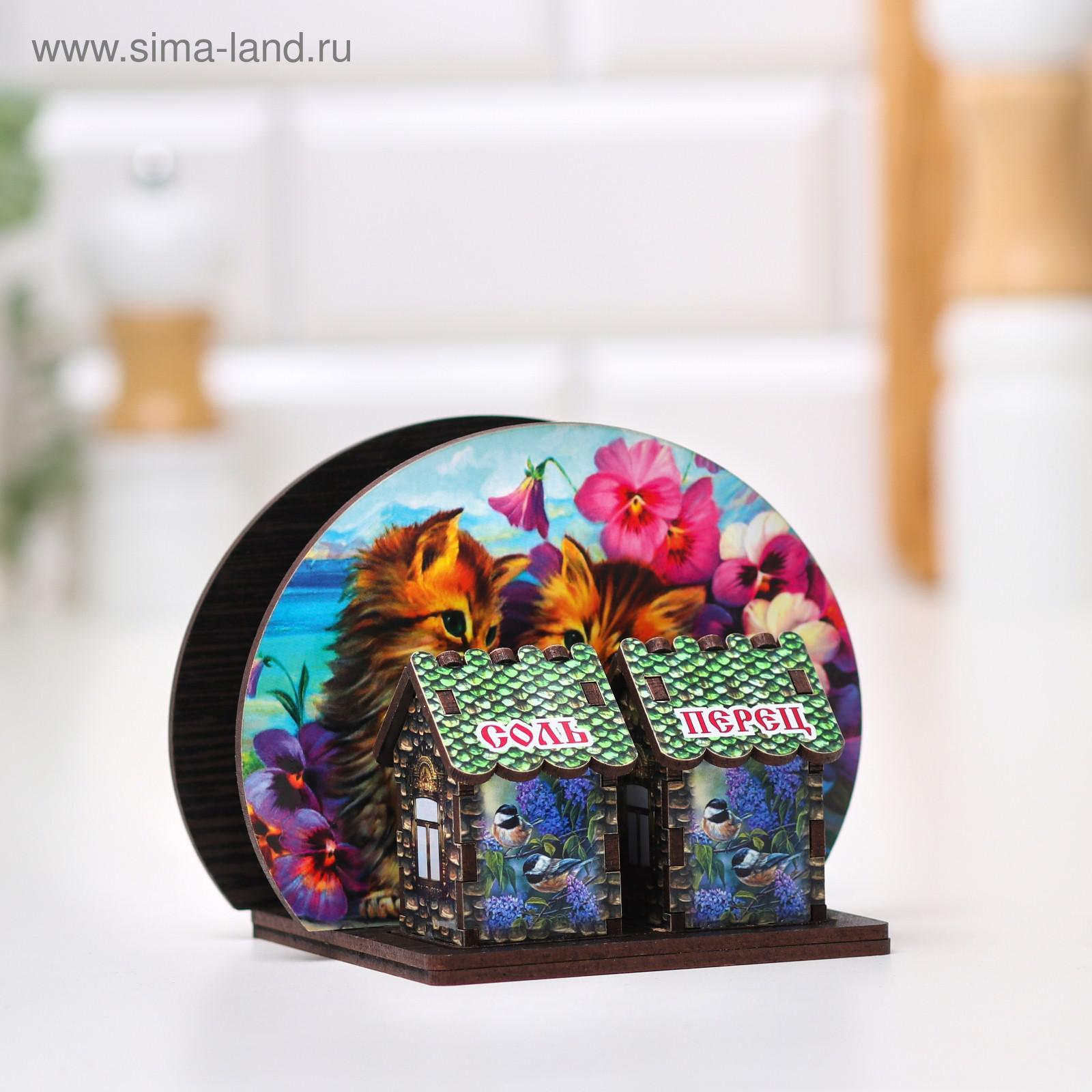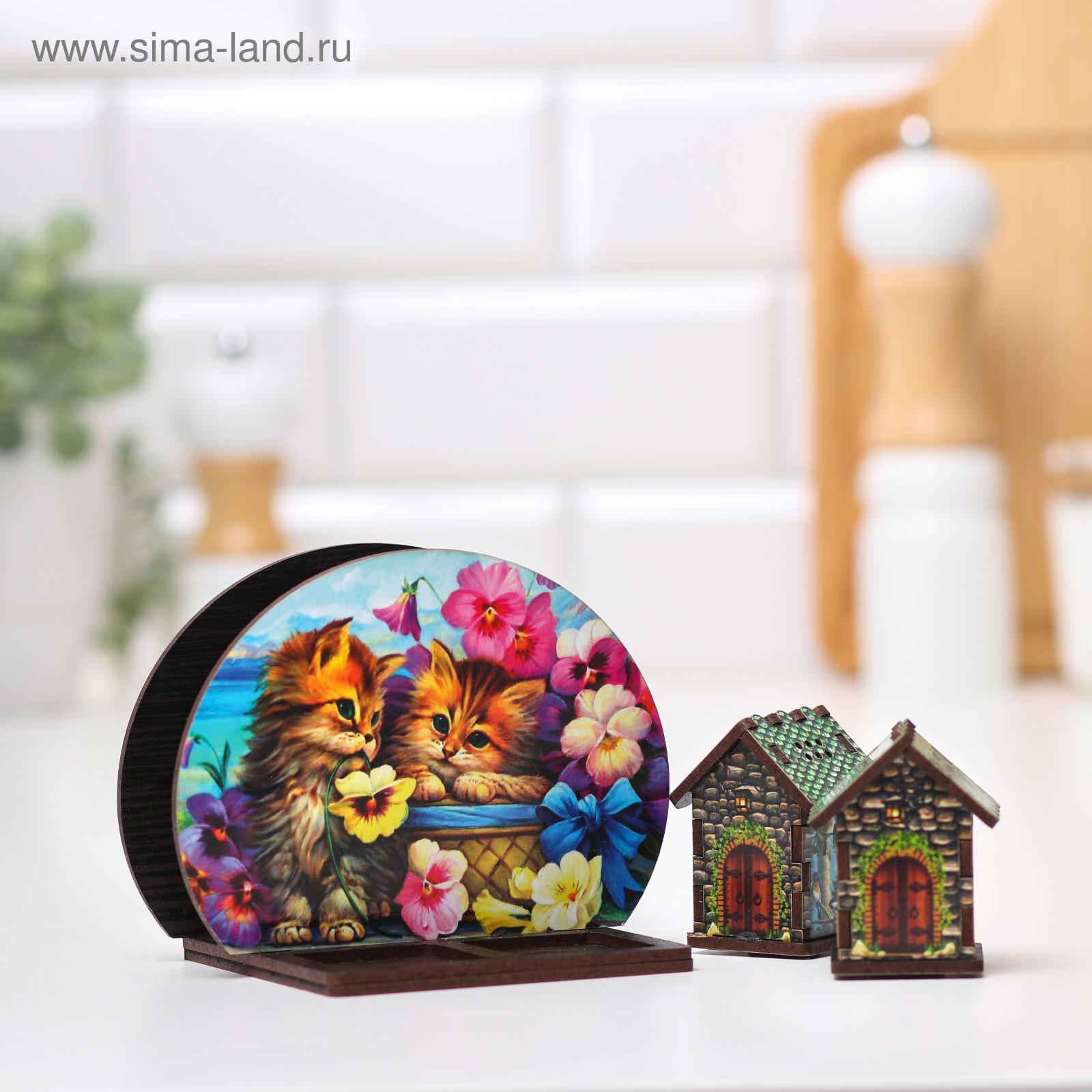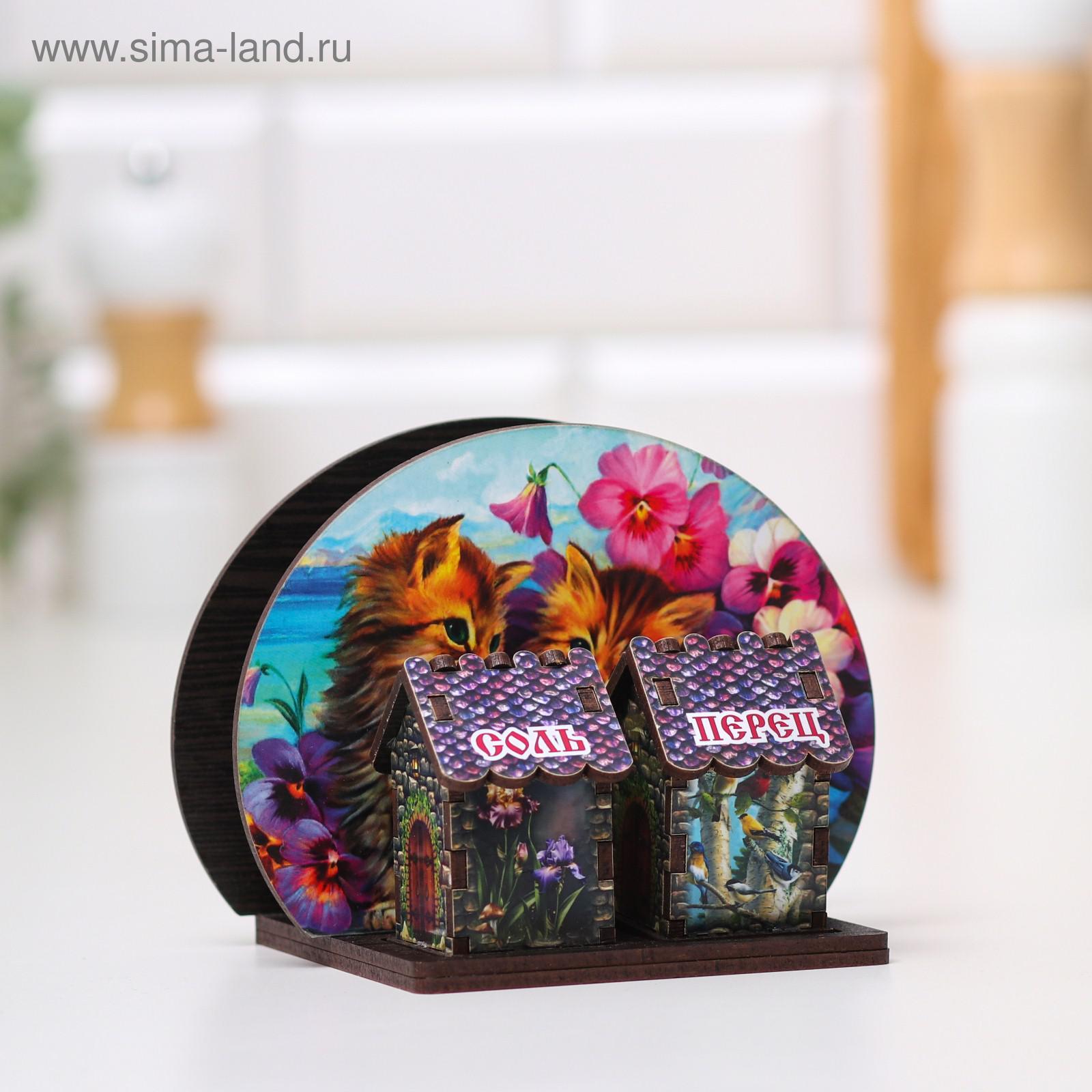 Набор для специй с салфетницей "котики в саду", 13х10х10 см, микс