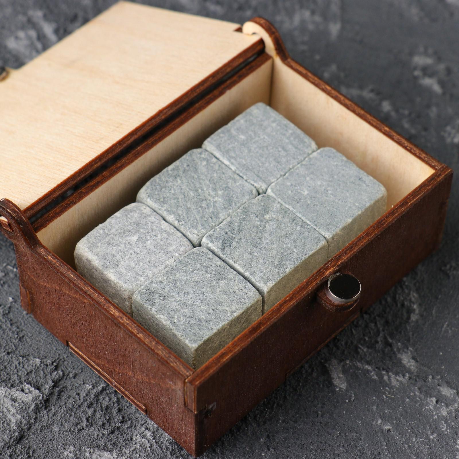 Камни для виски "камни настоящего", в шкатулке с магнитом, натуральный стеатит, 6 шт