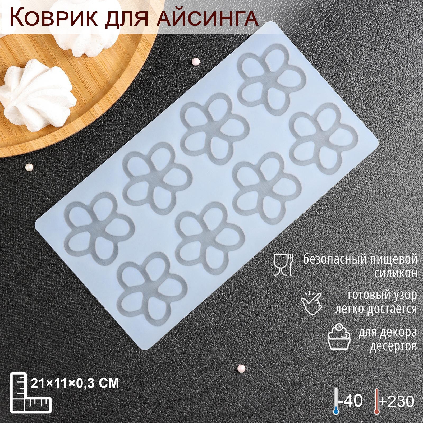 Форма для шоколада «цветочки», силикон, 8 ячеек, 21x11x0,3 см, цвет прозрачный