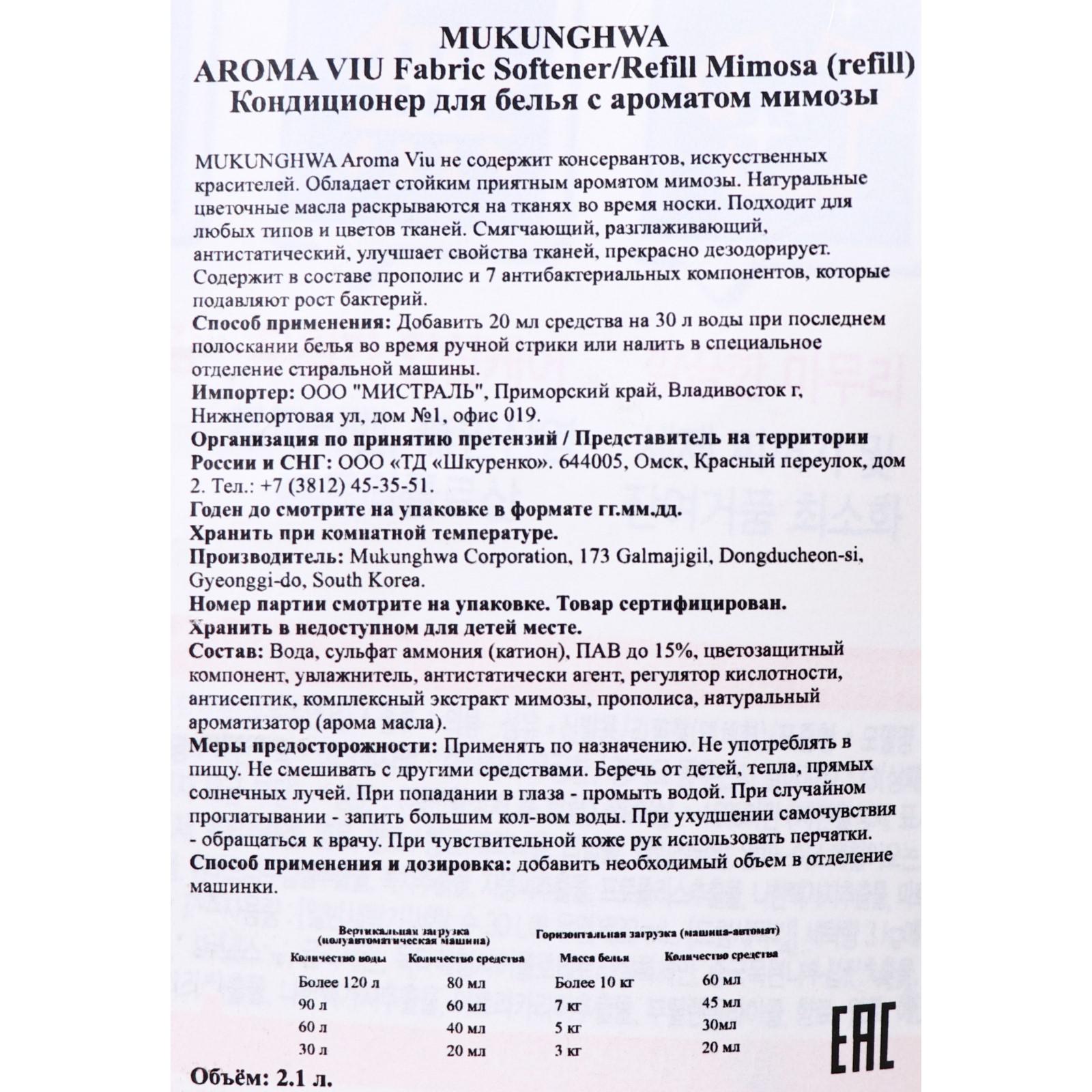Кондиционер для белья Mukunghwa Aroma Viu "золотая мимоза", антибактериальный, 2.1 л