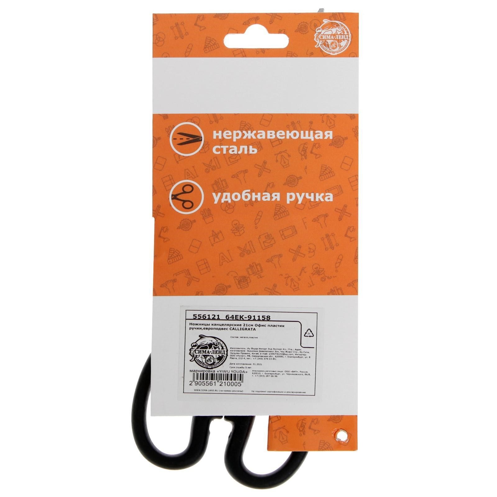 Ножницы канцелярские, 21 см (+-0.5 см), Calligrata «офис», пластиковые ручки, европодвес