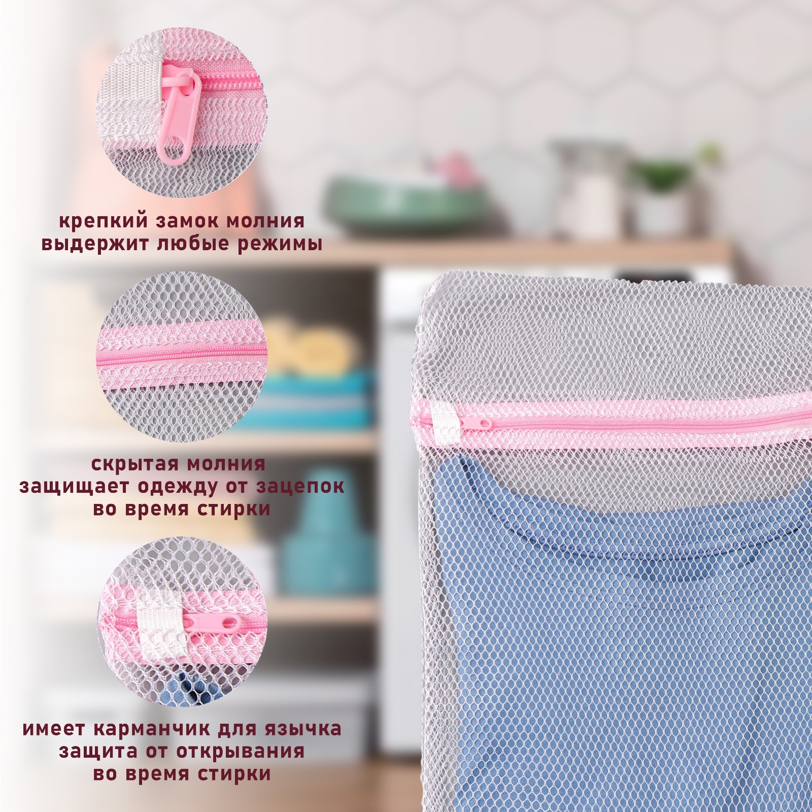 Мешок для стирки белья доляна, 30x40 см, крупная сетка, цвет белый. Каждый, у кого есть стиральная машинка, хоть раз сталкивался с рядом проблем: теряется второй носок, машина «танцует» и сильно трясётся при отжиме или полоскании, нижнее бельё теряет свою форму и привлекательный внешний вид. Как избежать всех этих проблем? У нас есть простое и очень доступное решение —мешок для стирки! Мешки для стирки используются опытными и бережливыми хозяйками. Мы уверены, вы оцените его преимущества: исключает попадание мелких вещей (застёжек, бусин или пуговиц) во внутренние части стиральных машин; незаменим при стирке вещей с завязками, крючками или тесьмой; сохраняет форму нательного и детского белья, идеален для стирки шерсти и кружев; предотвращает деформацию трикотажа; не допустит дисбаланса при отжиме (мелкие вещи не будут утяжелять отдельные части постельного белья), и машинка не будет «трястись». Такой помощник необходим в каждом доме, и благодаря минимальной цене он может стать вашим уже сейчас! Цвет: Белый parts count: 0 tnved: 6307909800 Материал: Полиэстер Вид ручки: Без ручки Тип мешка: Однослойный Размер сетки: Крупная С диском: Нет  развернуть описание ▼