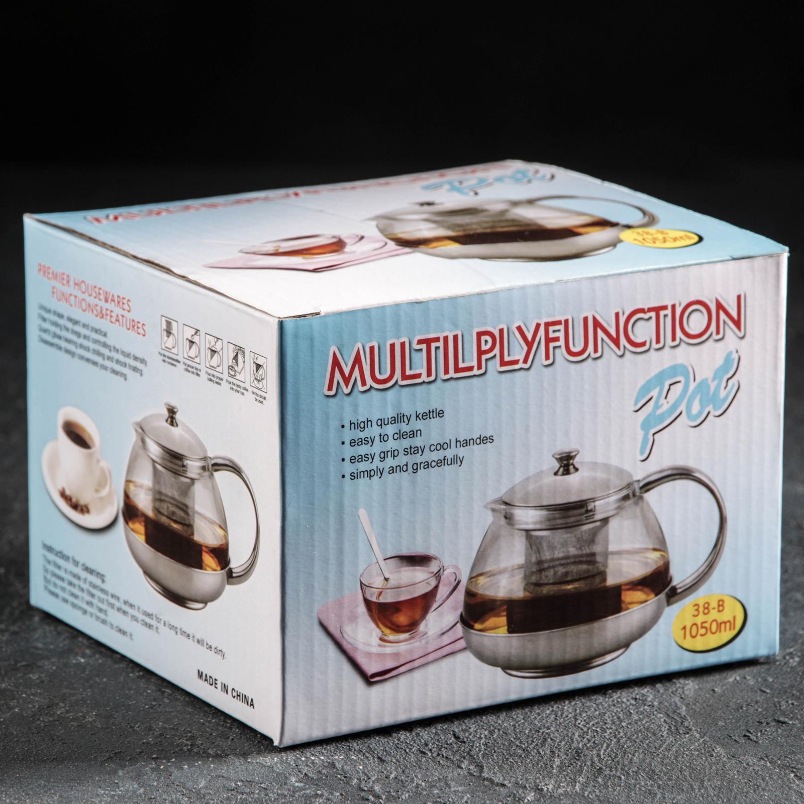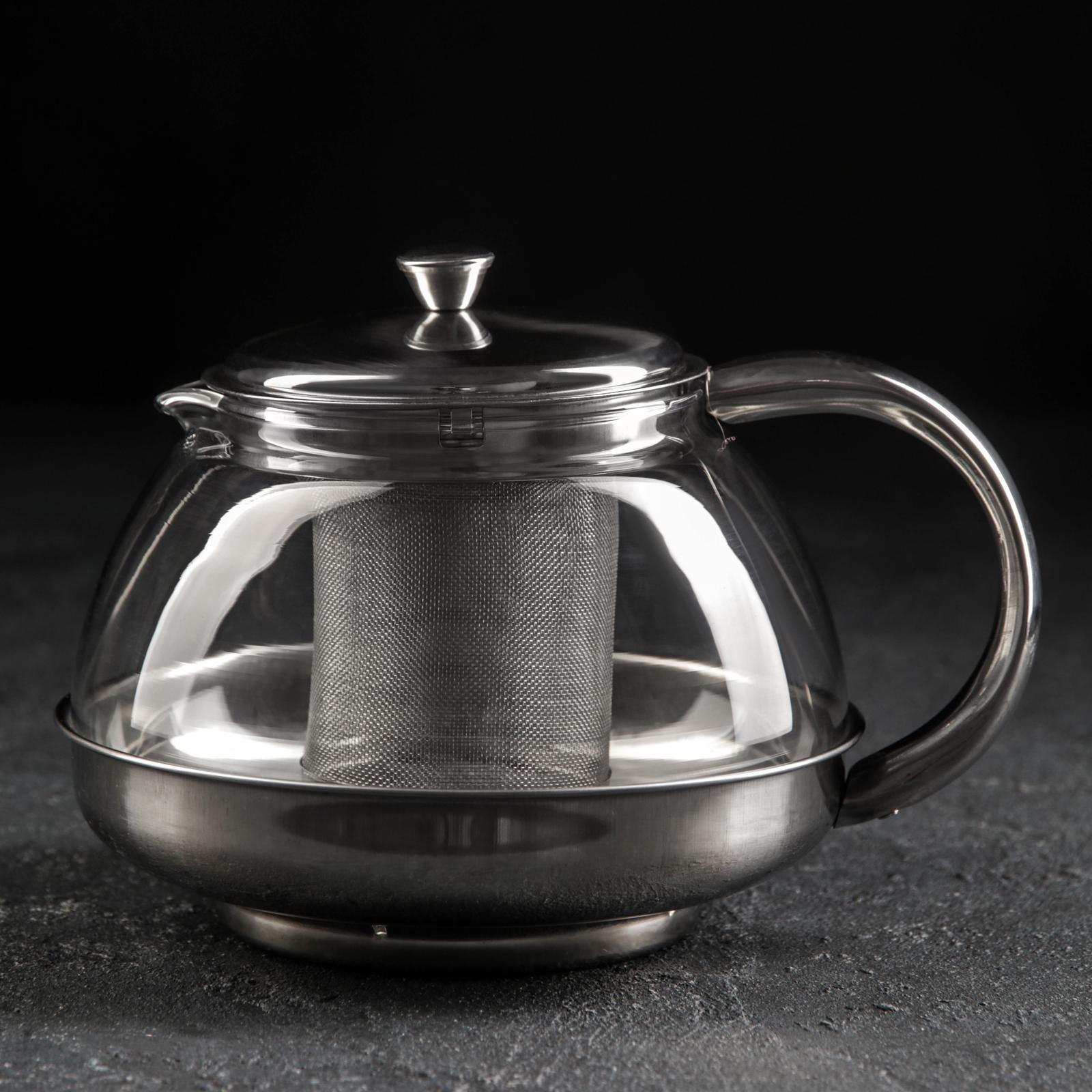 Чайник стеклянный заварочный с металлическим ситом «металлик», 1 л