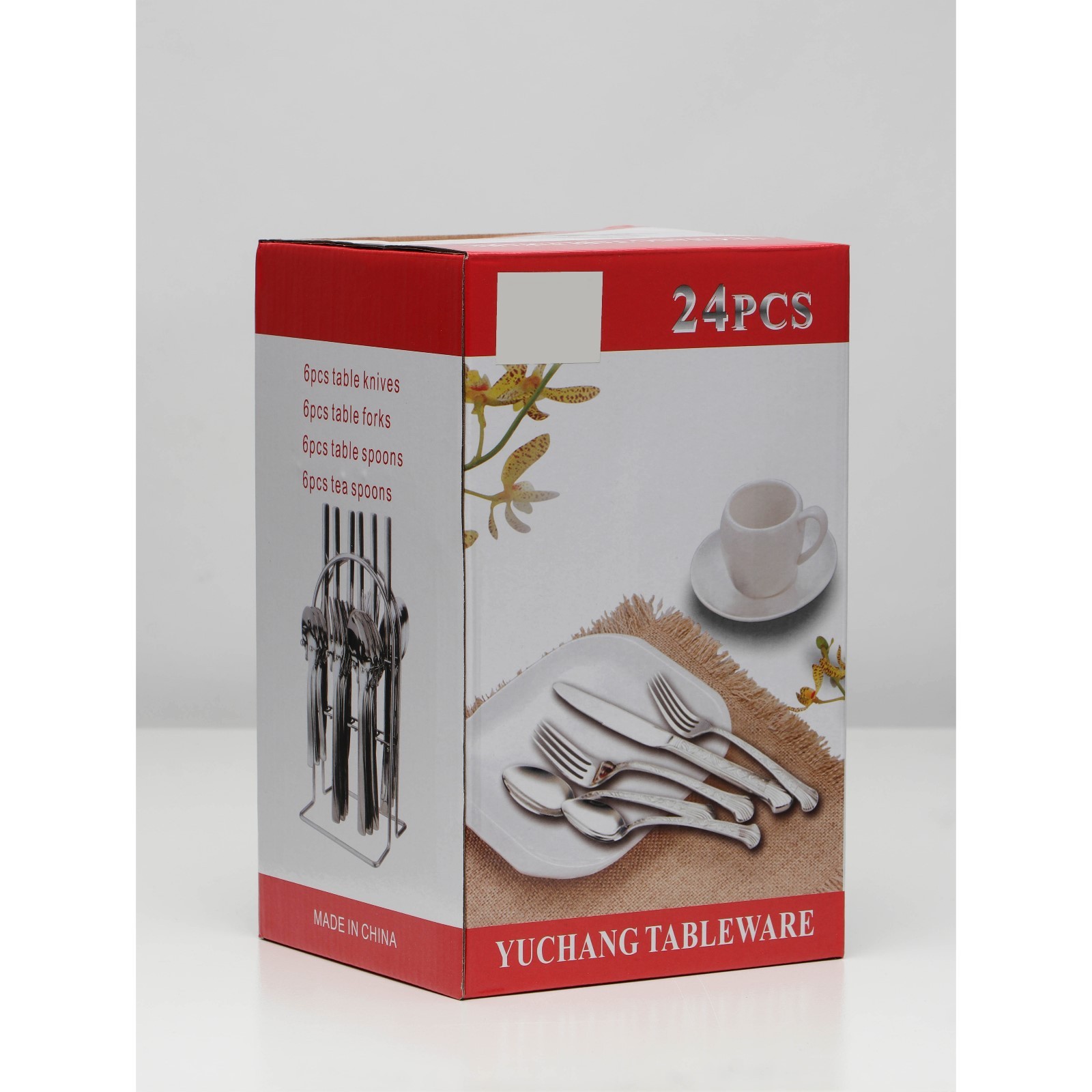 Набор столовых приборов из нержавеющей стали «классика», 24 предмета, на подставке, толщина 1,2 мм, цвет серебряный