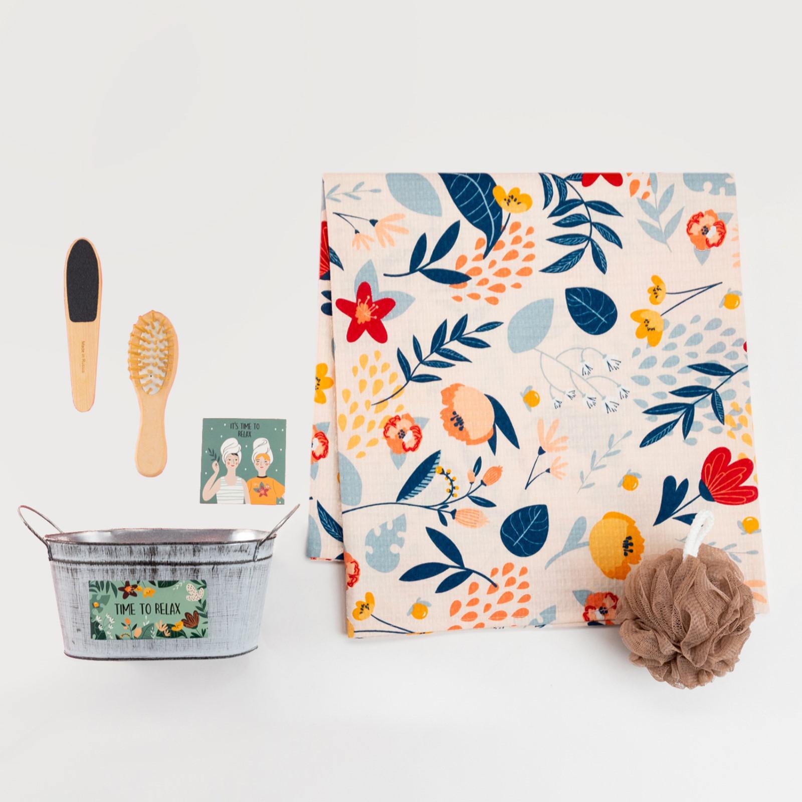 Набор подарочный «этель» time to relax, 5 предметов, полотенце, мочалка, расчёска. Набор:Да|Цвет:Бежевый|Цвет:Зелёный|Для кого:Для женщины|Ткань:Вафельное полотно|Плотность, г/м :160|Размер, см:80 х 150|В наборе, шт.:5|Тематика:Люди|Тематика:Цветочно-растительная|Вид упаковки:Ведерко|Вид упаковки:Пакет|Тематика праздника:8 Марта|Адресат:Женщине|Возраст:Взрослый|Декоративные элементы:Без элементов|Рекомендации по уходу:Стирка при 40 °С|Рекомендации по уходу:Барабанная сушка при низкой температуре|Рекомендации по уходу:Глажка при 110 °С|Рекомендации по уходу:Не отбеливать|Назначение полотенец:Для тела, банное|Состав ткани:Хлопок|Составляющие набора:Полотенце|Составляющие набора:Расчёска для волос|Составляющие набора:Пемза|Составляющие набора:Мочалка|Составляющие набора:Тёрка|Возраст:Для взрослых|В подарочной упаковке:Да|Особенности:Принт|Страна:Россия  развернуть описание ▼