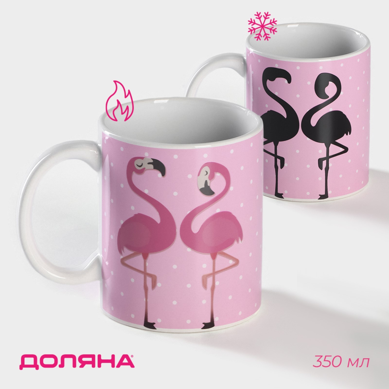 Кружка-хамелеон керамическая доляна «фламинго», 350 мл, цвет розовый