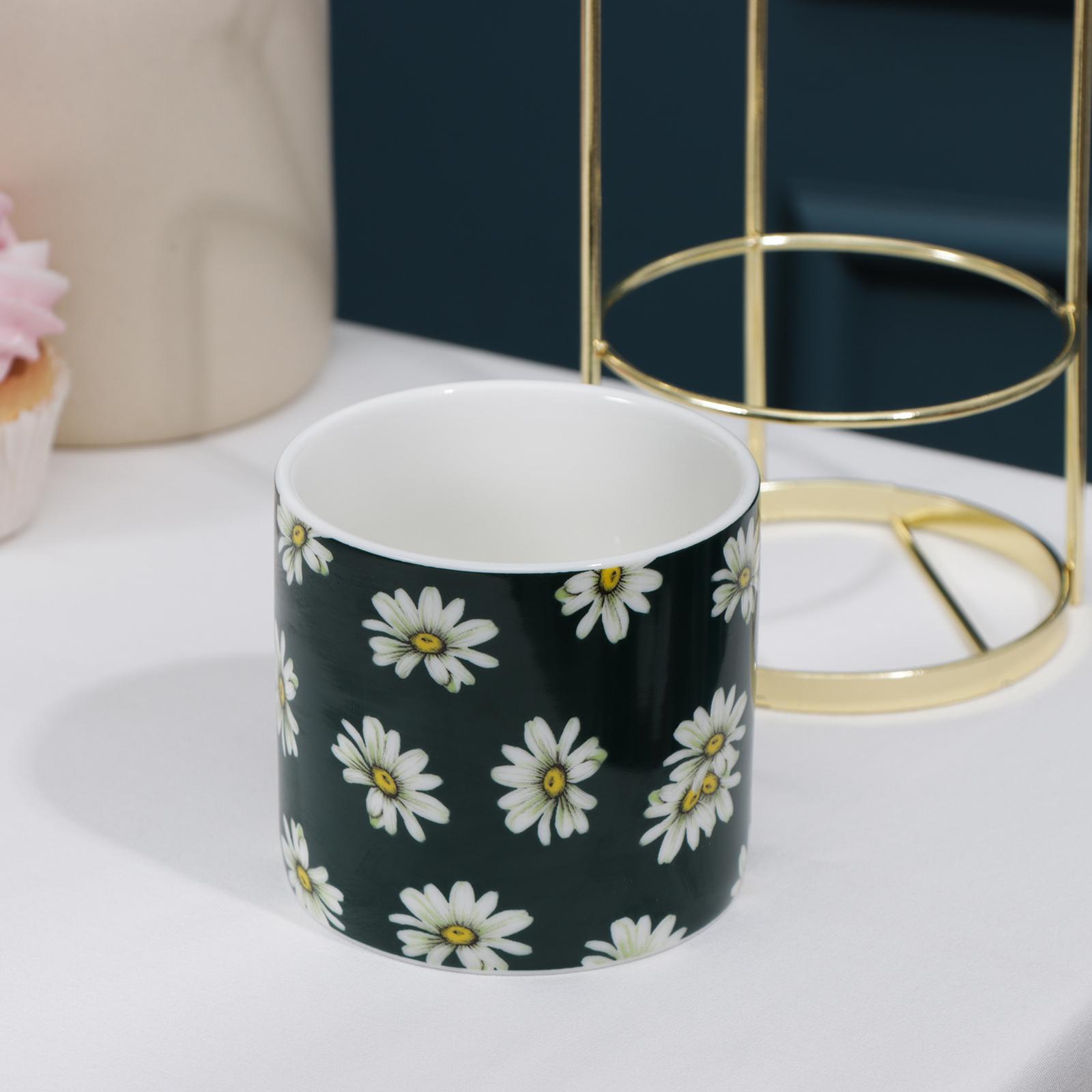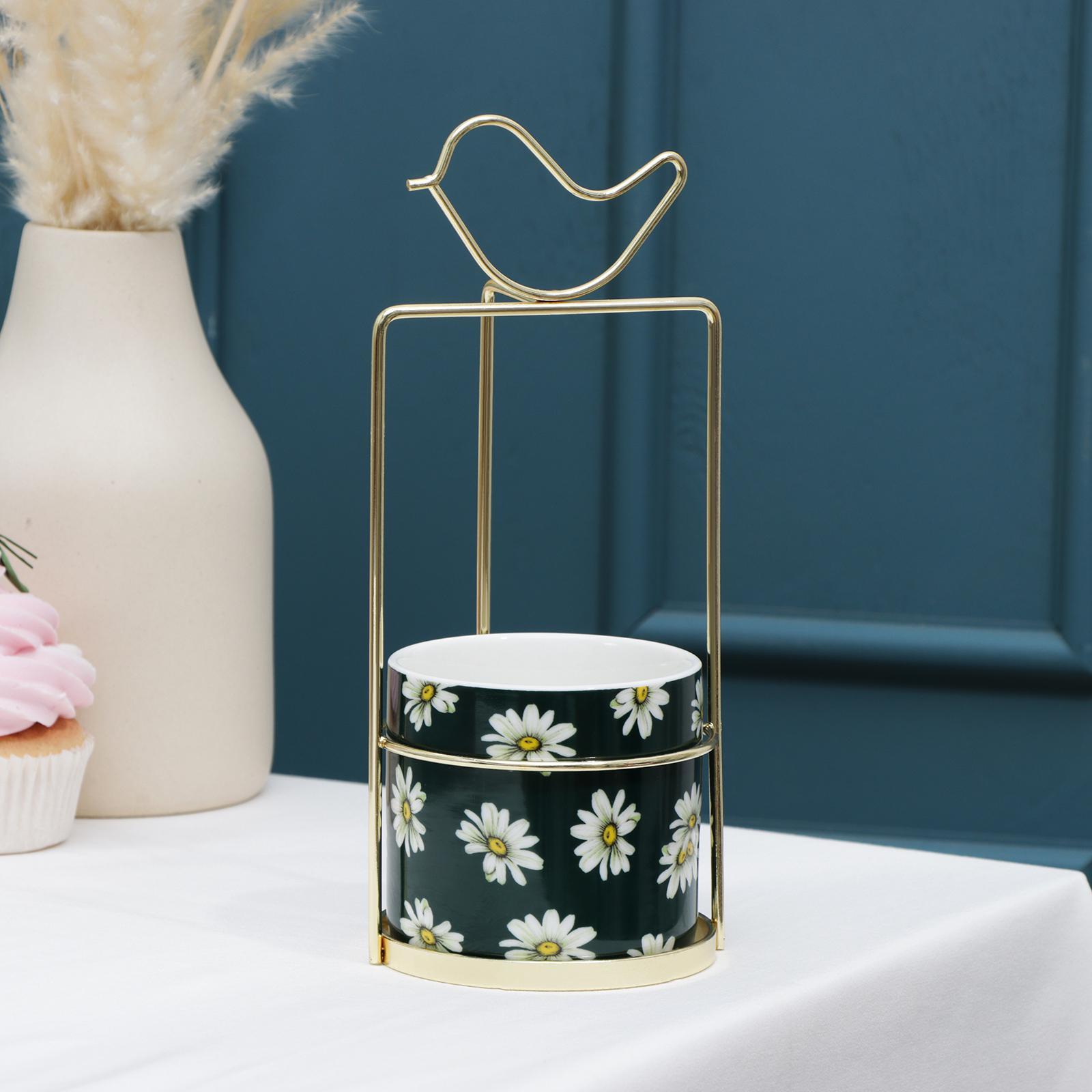 Конфетница керамическая «ромашки», 9x9x21 см, цвет подставки золотой