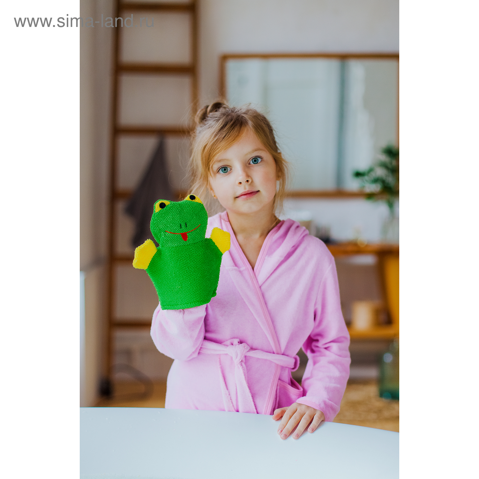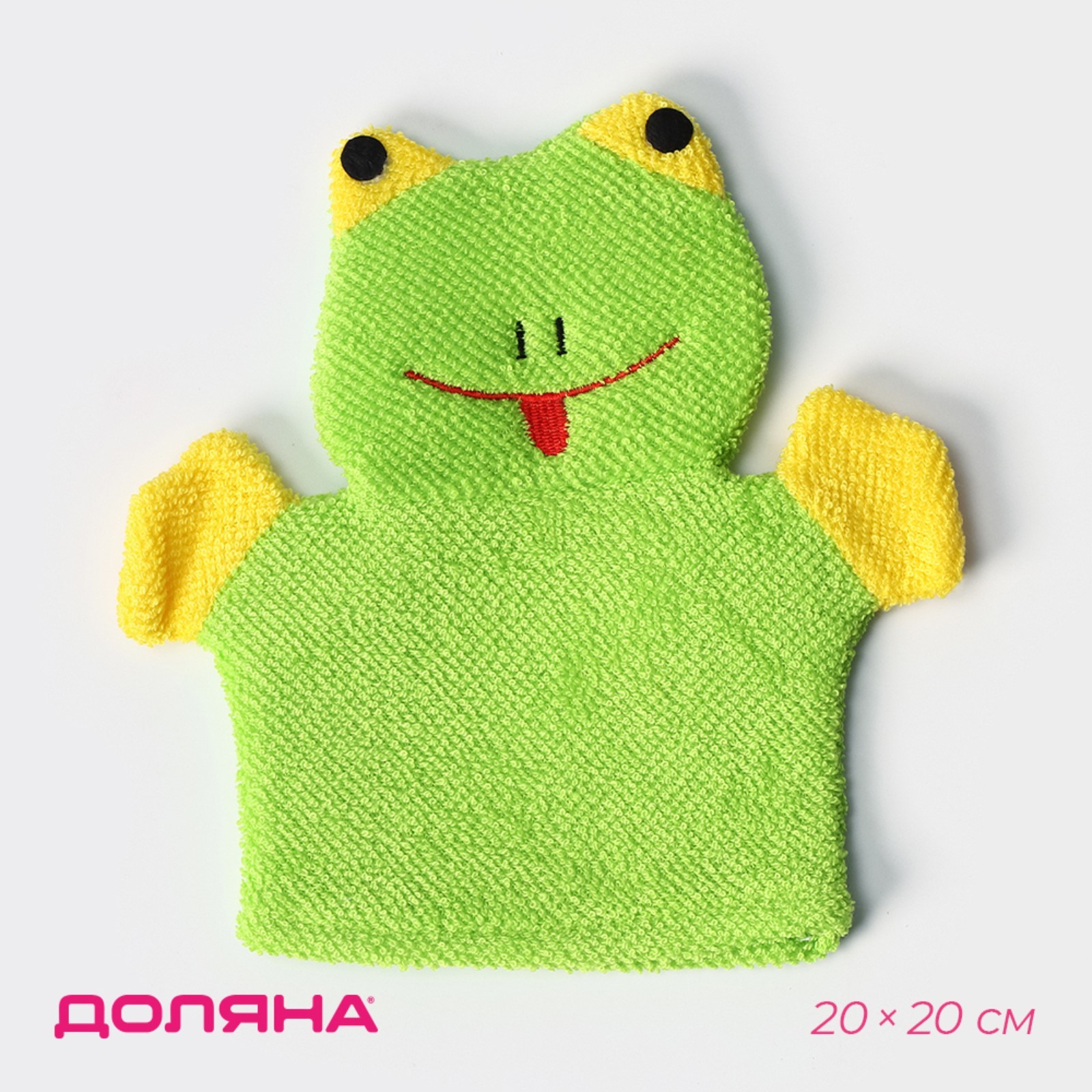 Мочалка-варежка детская для купания доляна «лягушонок», 21 см