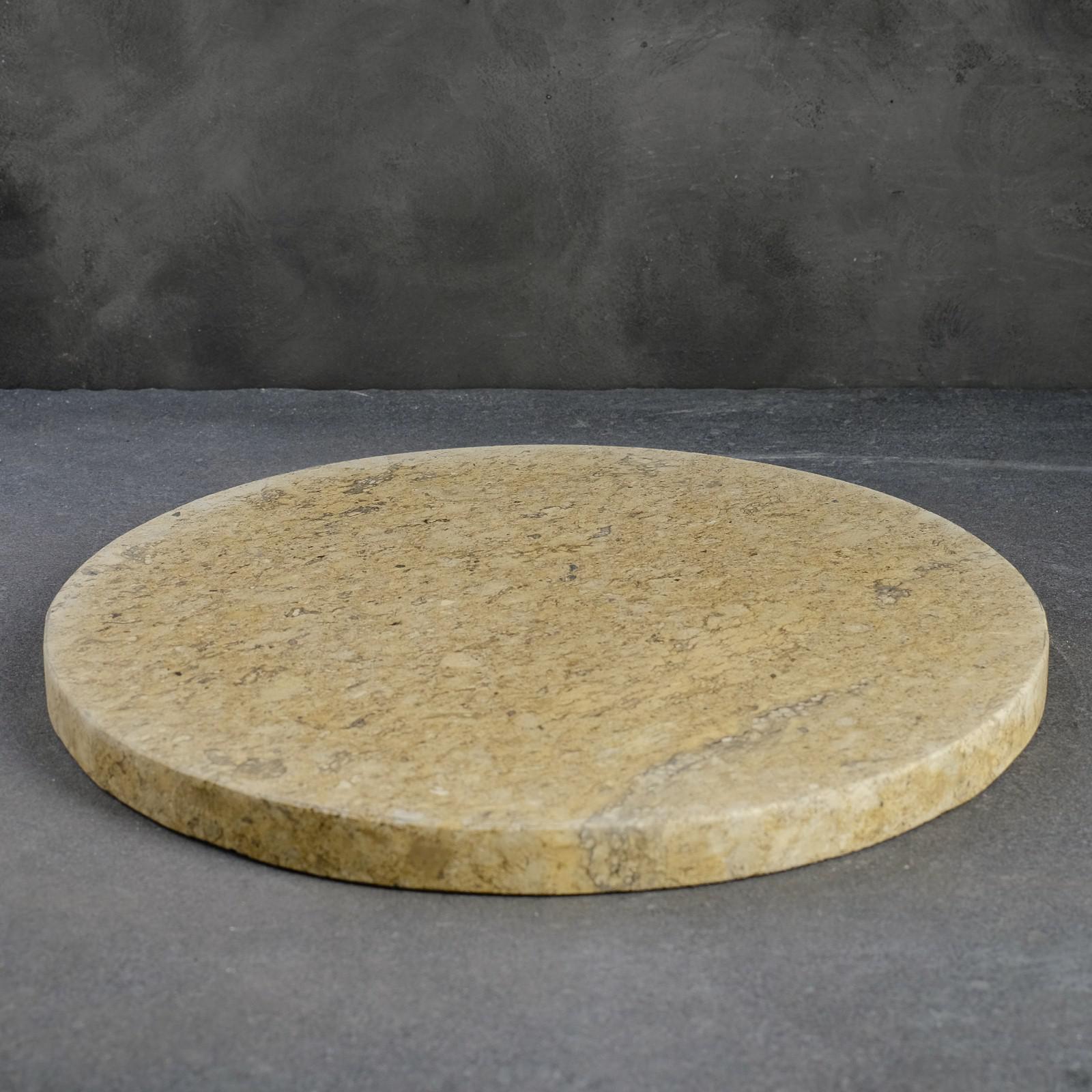 Пекарский камень вулканический круглый, 30х2 см. Пекарский камень изготовлен из вулканического пепла. Этот природный материал, намного крепче и долговечнее аналогов из шамотной глины. Он не вступает в химическую реакцию с продуктами, а значит полностью безопасен для здоровья человека. Принцип работы Камень для выпечки, прогреваясь, аккумулирует тепло и благодаря высокой теплоёмкости равномерно нагревает выпечку, создавая эффект настоящей русской печи. Вы можете готовить полезную и здоровую пищу без масла, достаточно просто положить пергаментную бумагу на камень и блюдо не пригорит. Применение: 1. Перед тем как использовать камень нужно положить на него пергаментную бумагу или посыпать мукой, чтобы избежать прилипания теста к камню. 2. Далее поместите его в холодную духовку на 35-40 мин и прогревайте при максимально возможной температуре. 3. После того, как камень прогрелся можно смело выкладывать тесто используя при этом лопаточку. Уход и рекомендации Перед первым использованием необходимо просушить камень, если это требуется. После использования оставьте камень в духовке до полного остывания. Не смазывайте камень маслом или жиром. Камень не предназначен для мытья в посудомоечной машине. Не используйте чистящие средства для мытья. Не роняйте камень, механические повреждения могут повлиять на срок службы. Для удаления остатков пищи используйте металлическую кухонную лопатку или щётку. После мытья камня, перед повторным использованием, его необходимо просушить в течение 2 дней. Изделия из теста можно выпекать непосредственно на камне и в формах для выпечки. При этом результат не меняется. Для запекания мяса или рыбы используйте алюминиевую фольгу для обёртывания. Камень остаётся горячим долгое время, при этом его цвет не меняется. Не трогайте изделие голыми руками. Форма: Прямоугольная Диаметр, см: 30 Средняя толщина стенки, см: 2 Максимальная температура нагрева, °C: 1500 Материал: Пепел вулканический Температурное ограничение: Нет Запрет реализации по сегментам: 00000000485  развернуть описание ▼