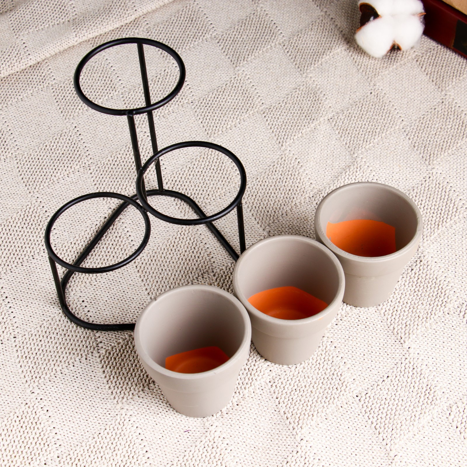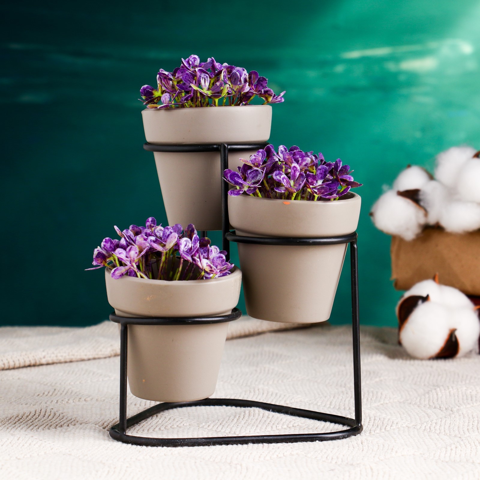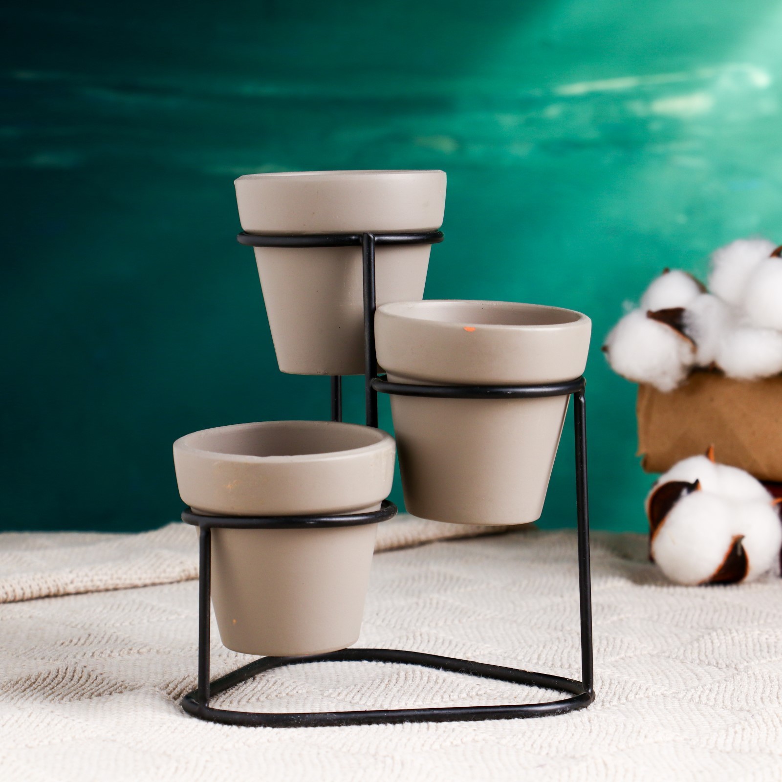 Набор кашпо для цветов «трио», керамика, на подставке, серый, 3 шт.. Цвет:Серый|Форма:Круглая|Диаметр, см:5.5|Высота, см:5.5|Объём, л:0.1|Вид установки:Настольное|Рисунок:Нет|Материал:Металл|Материал:Керамика|Можно оставлять зимой на улице:Нет|Имеется дренажное отверстие:Нет|Поддон в комплекте:Нет|Особенности:Фигурное|Тип полива:Без системы полива|Страна:Китай  развернуть описание ▼