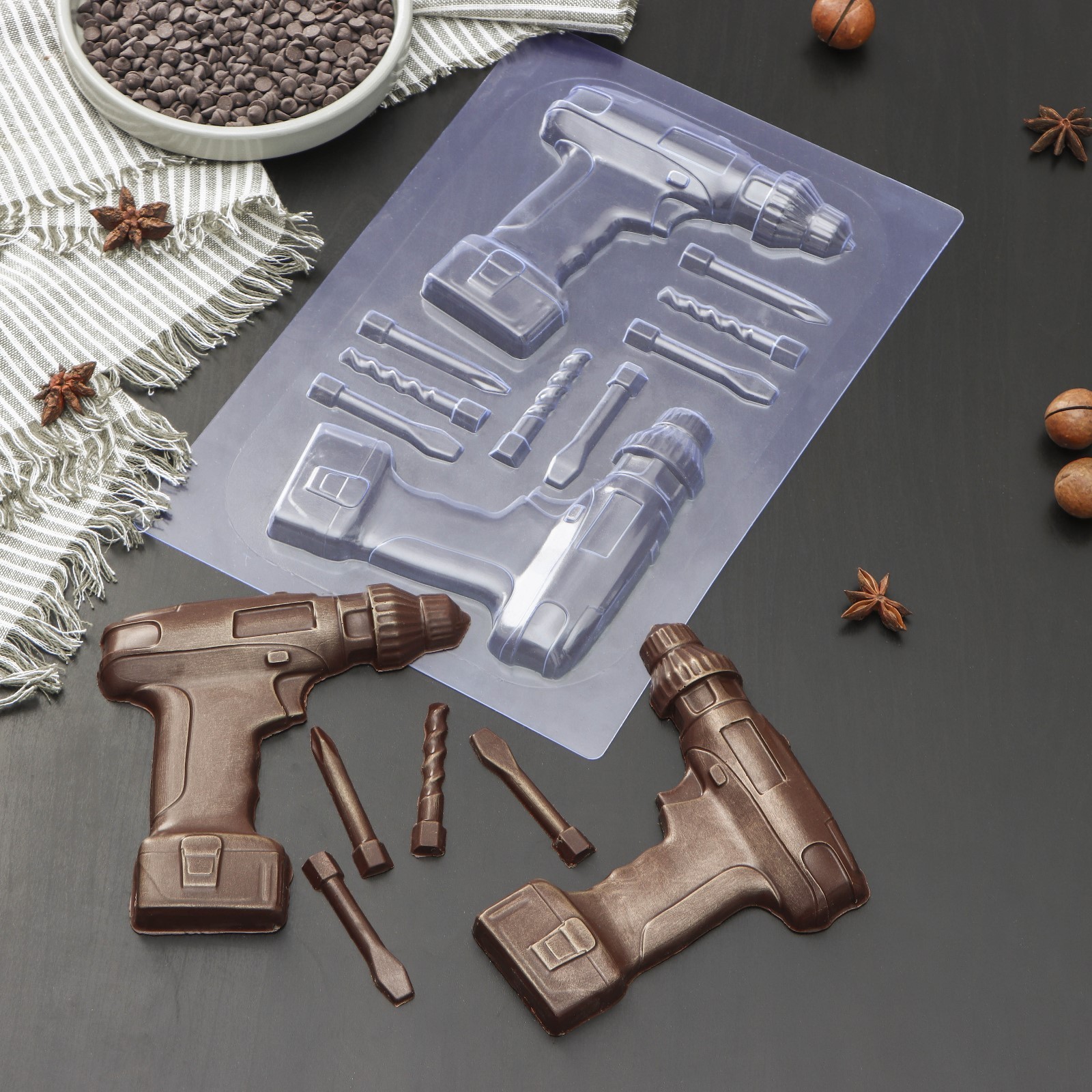 Форма для шоколада и конфет пластиковая «шуруповерт», цвет прозрачный