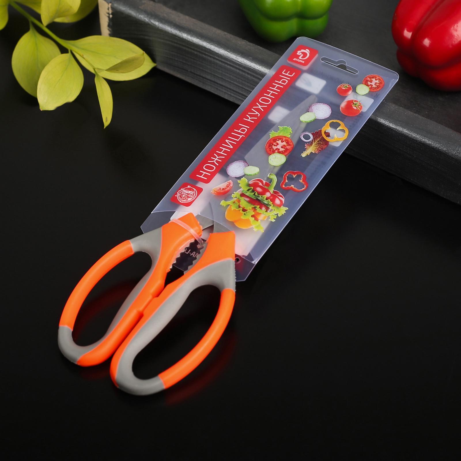 Ножницы кухонные доляна «драйв», 22 см, с открывалкой для бутылки, цвет микс