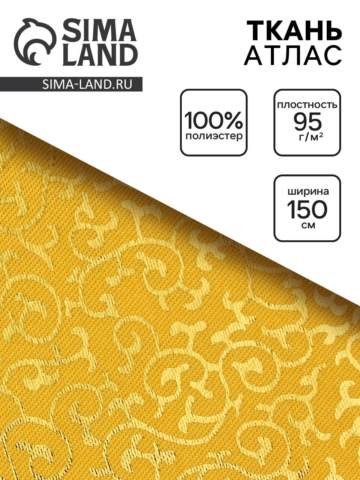 Ткань атлас для рукоделия и шитья, цвет золотой, ширина 150 см