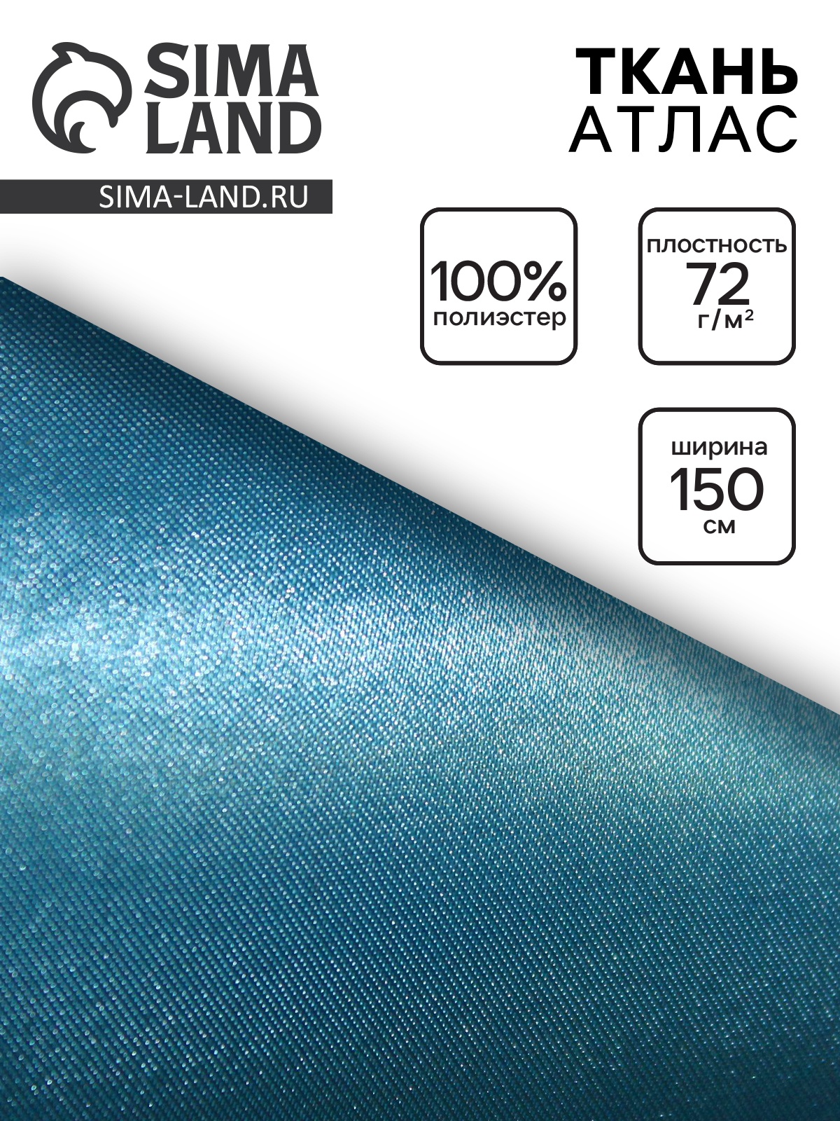 Ткань атлас для рукоделия и шитья, цвет голубой, ширина 150 см. Атлас — искусственный блестящий шёлк. Ткань хорошо струится. При правильном уходе этот материал не садится и не вытягивается, хорошо драпируется. Атлас применяется для пошива одежды, изготовления флагов и другого. Набор:Нет|Цвет:Голубой|Ткань:Атлас|Плотность, г/м :72|Длина, см:100|Длина, м:100|Ширина, см:150|Тематика:Однотонная|Рисунок:Нет|Состав ткани:Полиэстер|Назначение ткани:Сорочечная|Страна:Китай  развернуть описание ▼